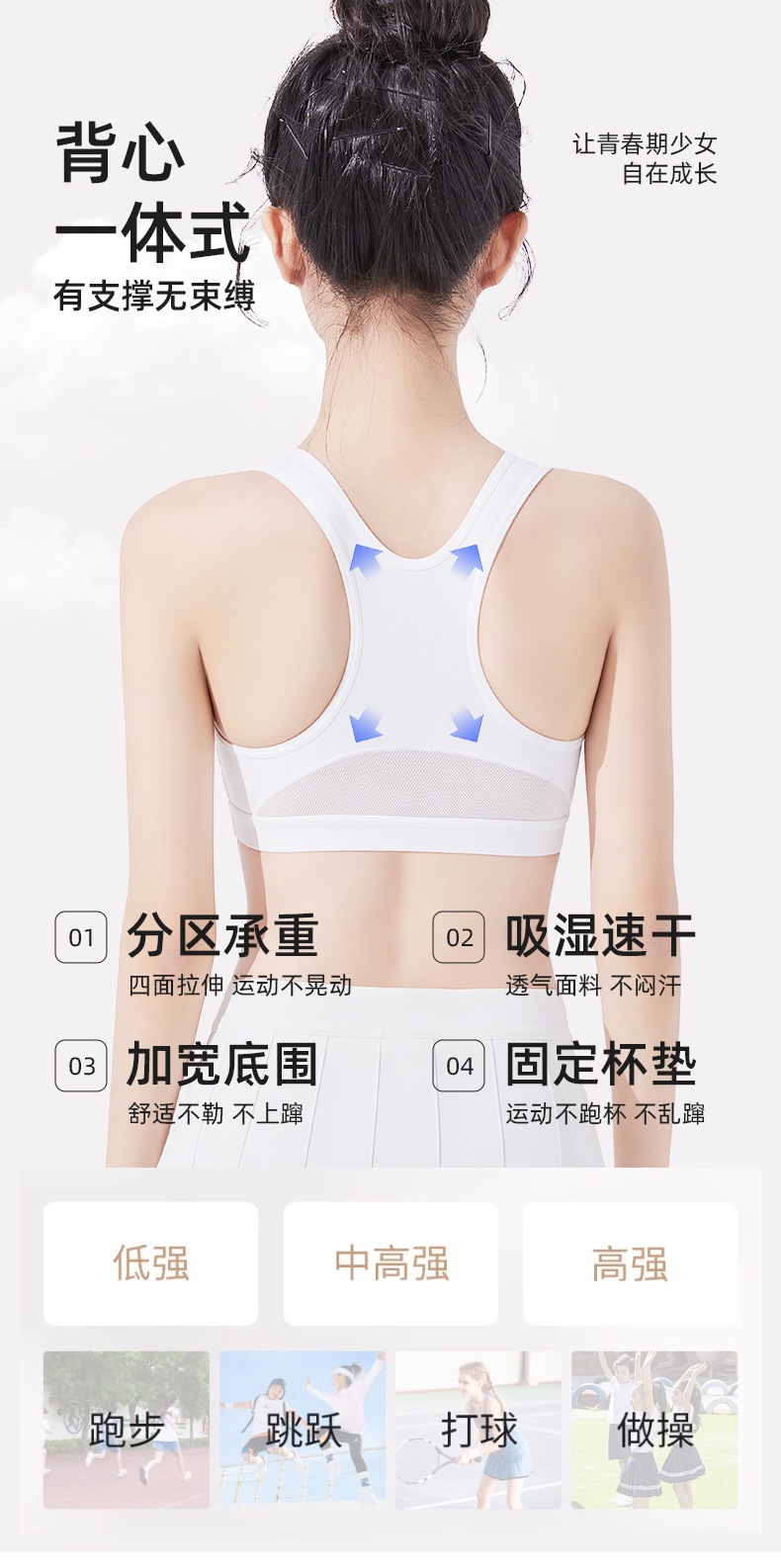 개발 여자 브라 모 데일 코튼 중학생 플러스 사이즈 속옷 소녀 달리기 스포츠 충격 방지 조끼