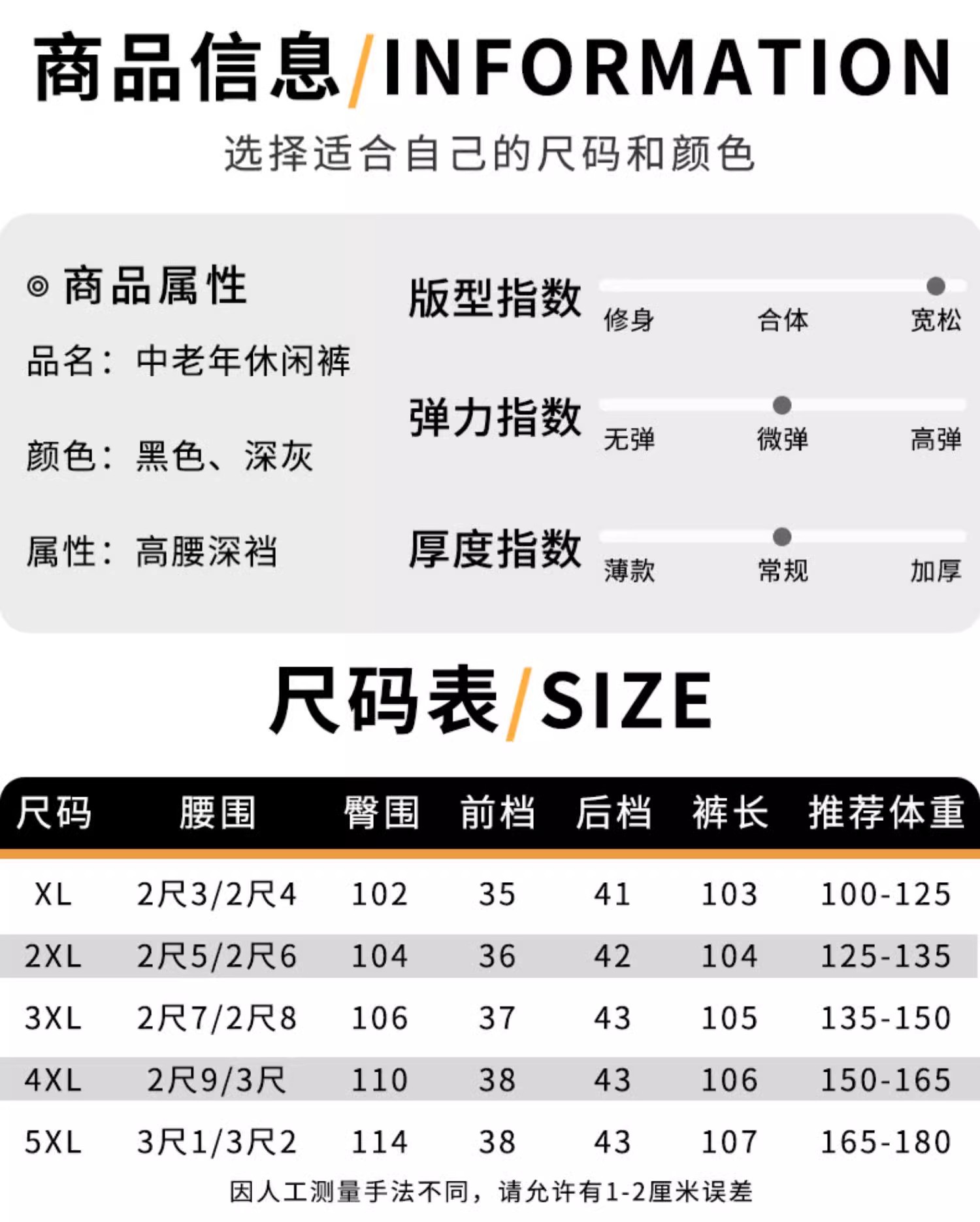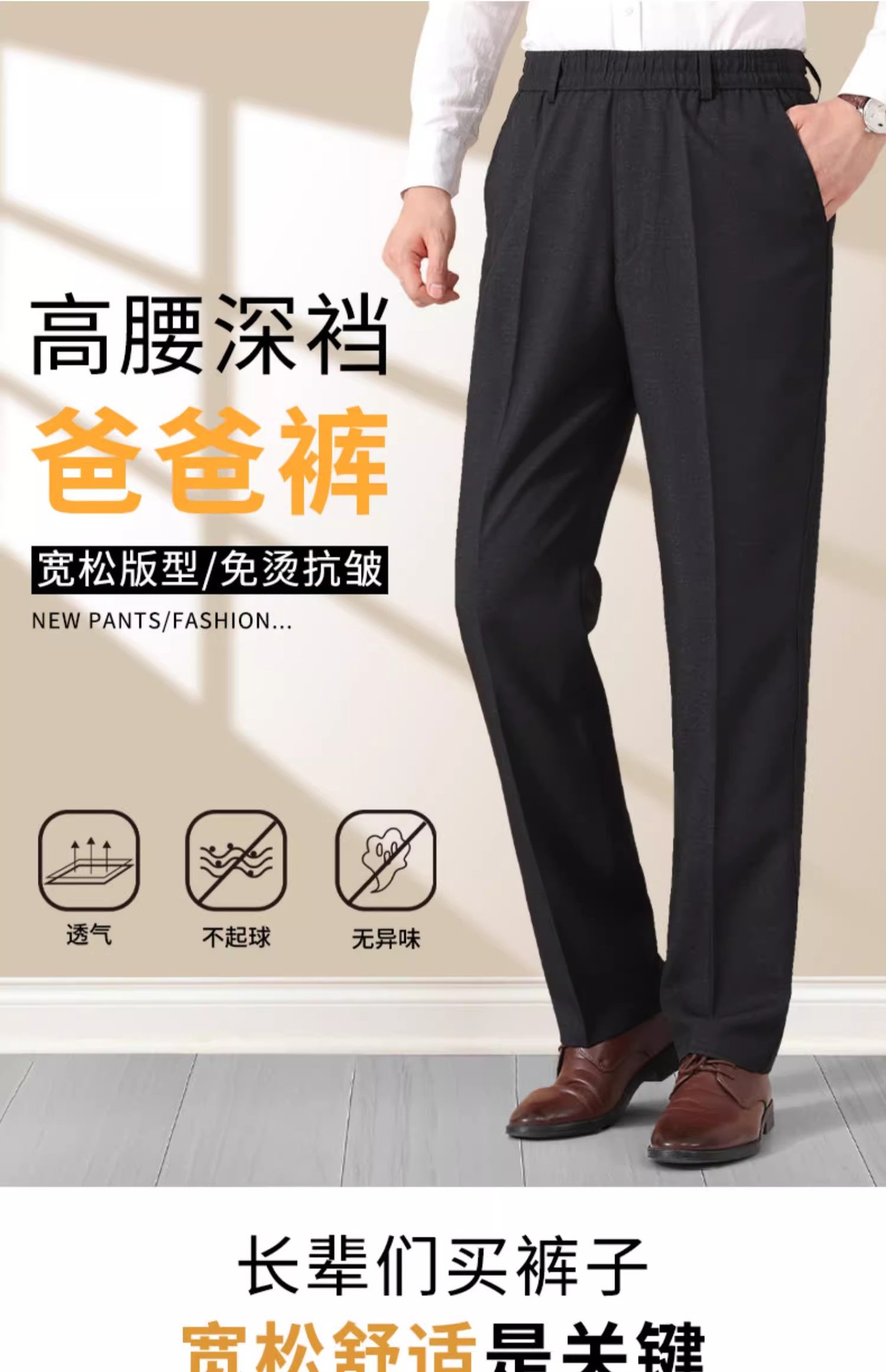 봄, 가을 아빠 캐주얼 바지 남성 중년 및 노인 남성 신축성있는 허리 바지 노인 할아버지 봄 바지