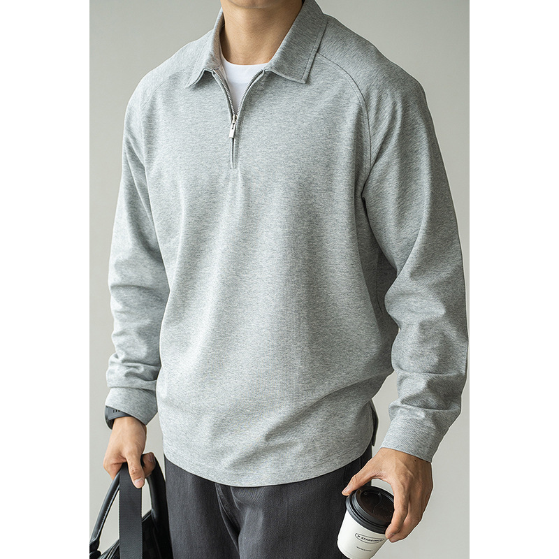 미국식 에어 레이어 코튼 하프 지퍼 올드 머니 스타일 남성용 스웨트셔츠 2025 가을 겨울 신상 드롭 숄더 긴팔 폴로 셔츠