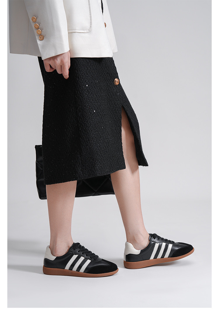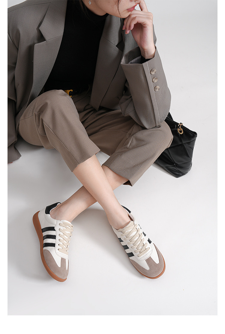 새로운 Dexun 신발 여성 2025 가을 레트로 정품 가죽 컬러 블록 캐주얼 플랫 포레스트 검프 카우보이 화이트 신발 캐주얼스토어 가기