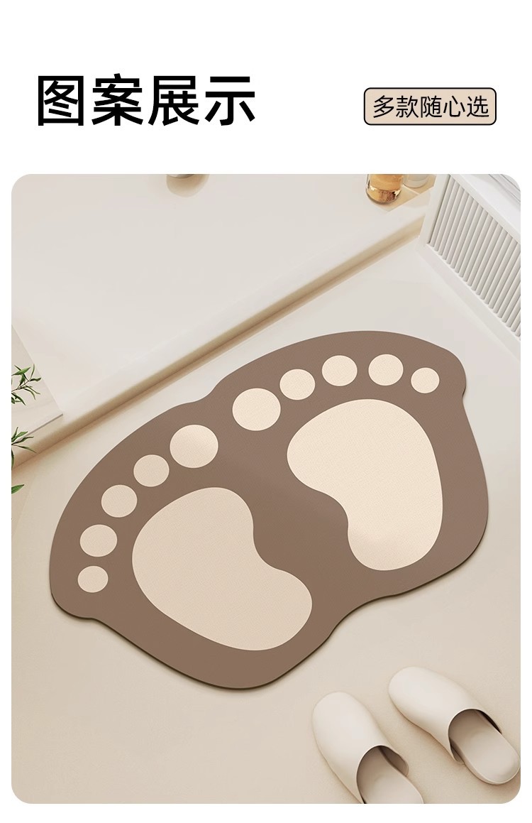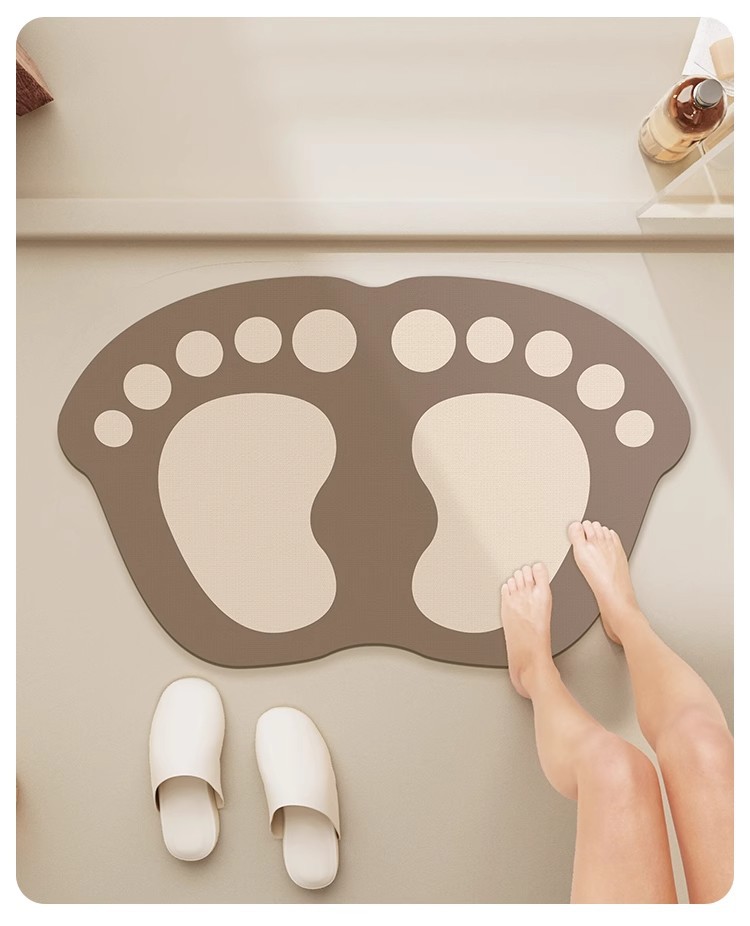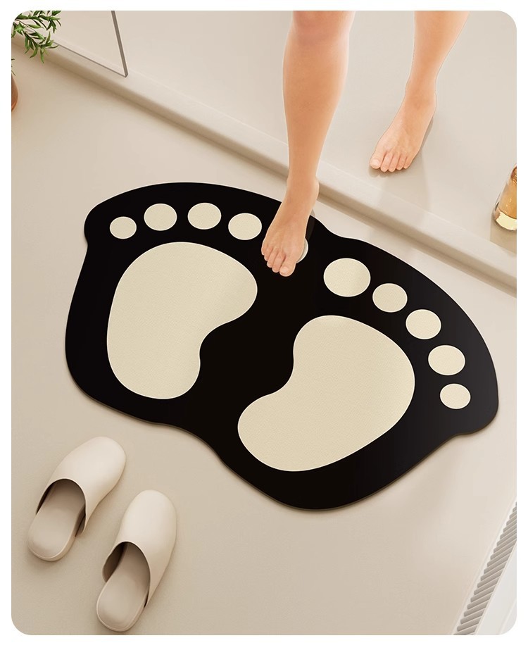 창조적 인 발자국 특수 모양의 Diatom 진흙 흡수성 빠른 건조 욕실 발 매트 가정용 입구 문 카펫 재고 도매