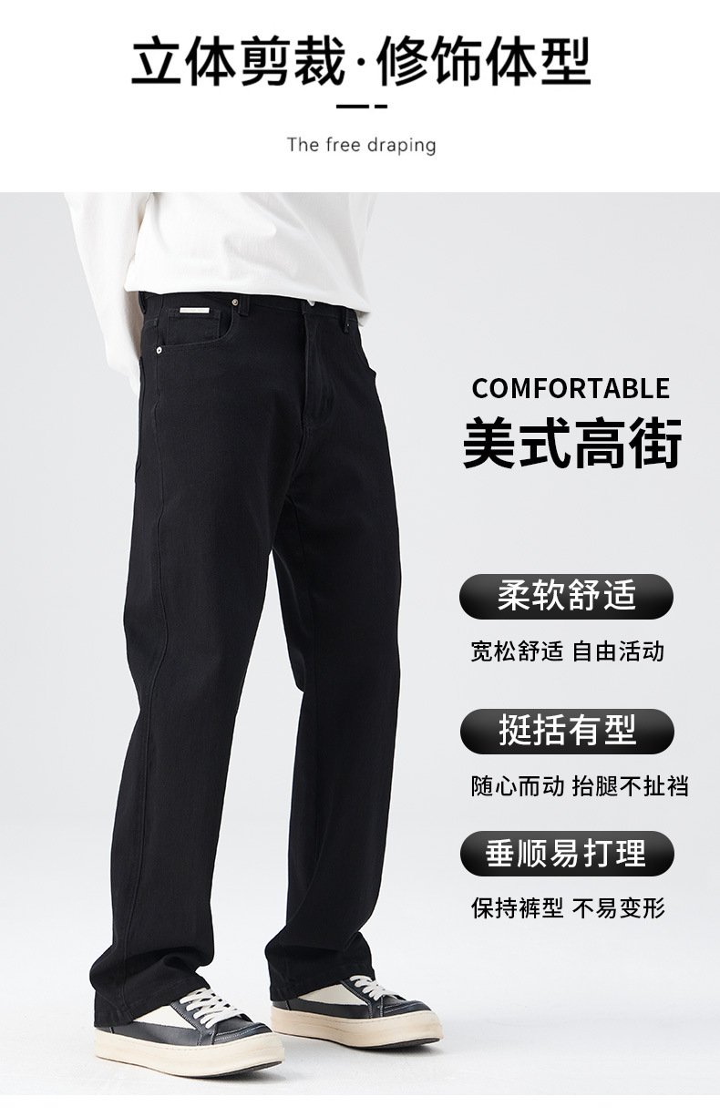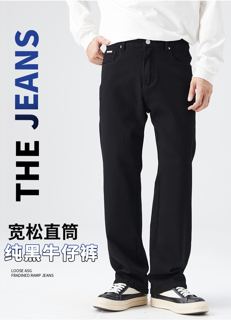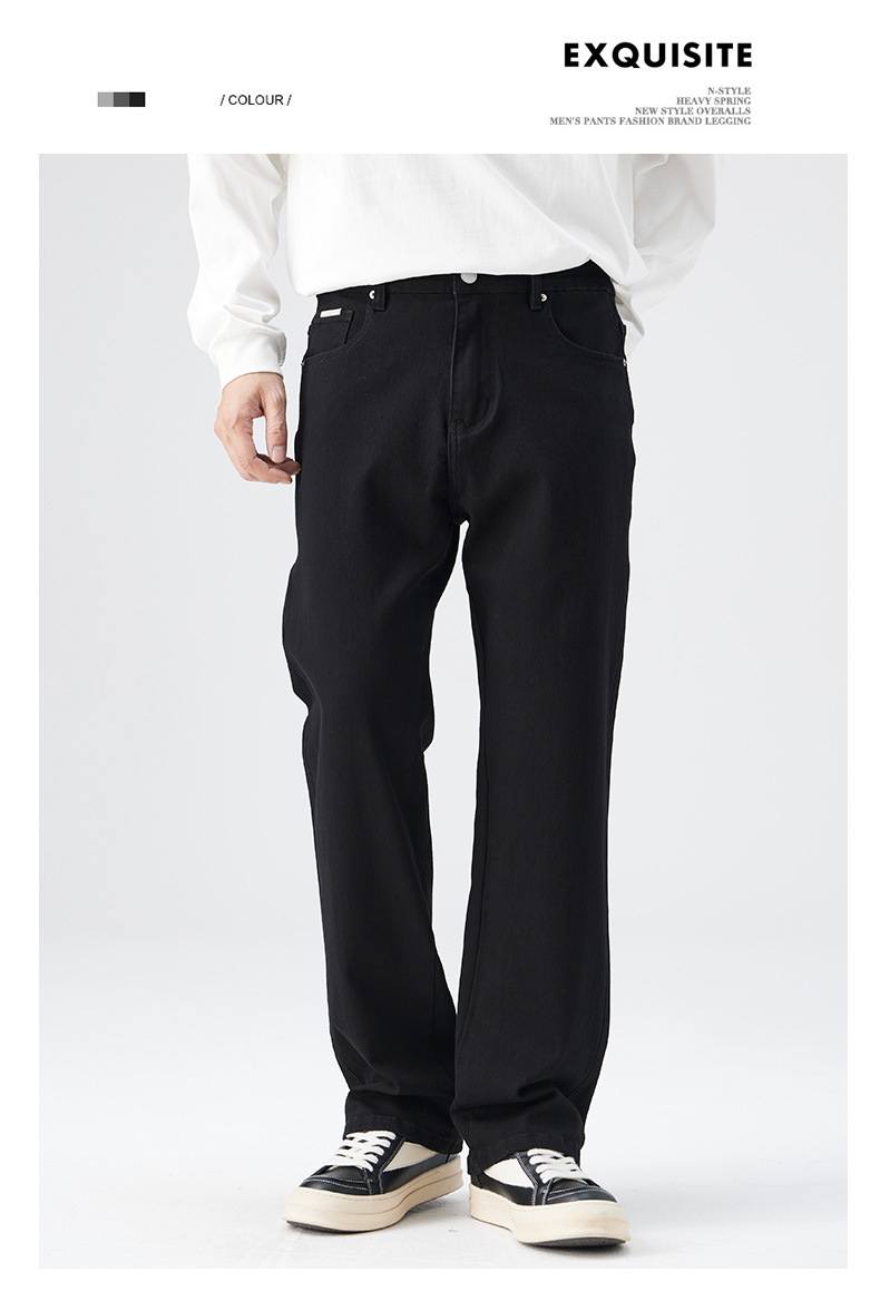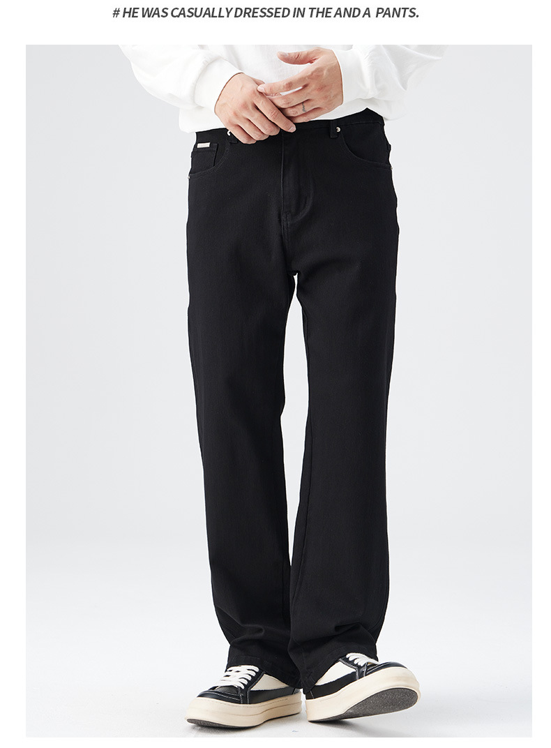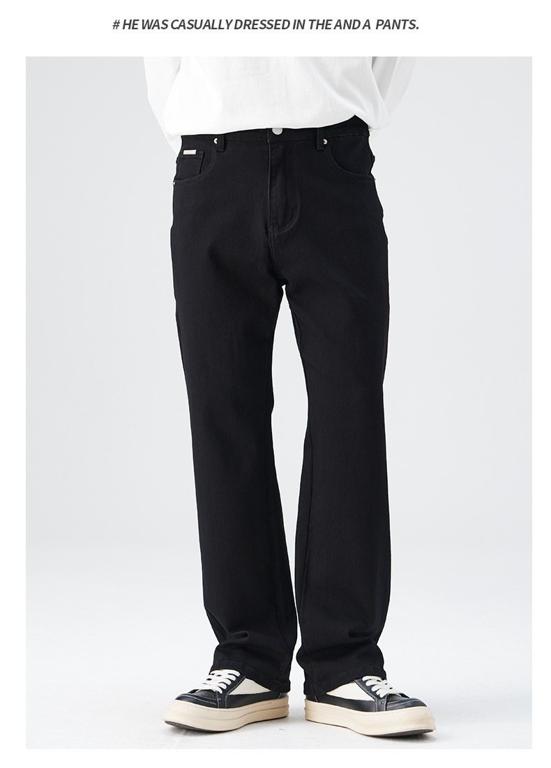 슬림 룩 키 큰 핸섬 블랙 청바지 남성 # 패션 브랜드 하이 스트리트 아메리칸 스트레이트 바지 하이 센스스토어 가기