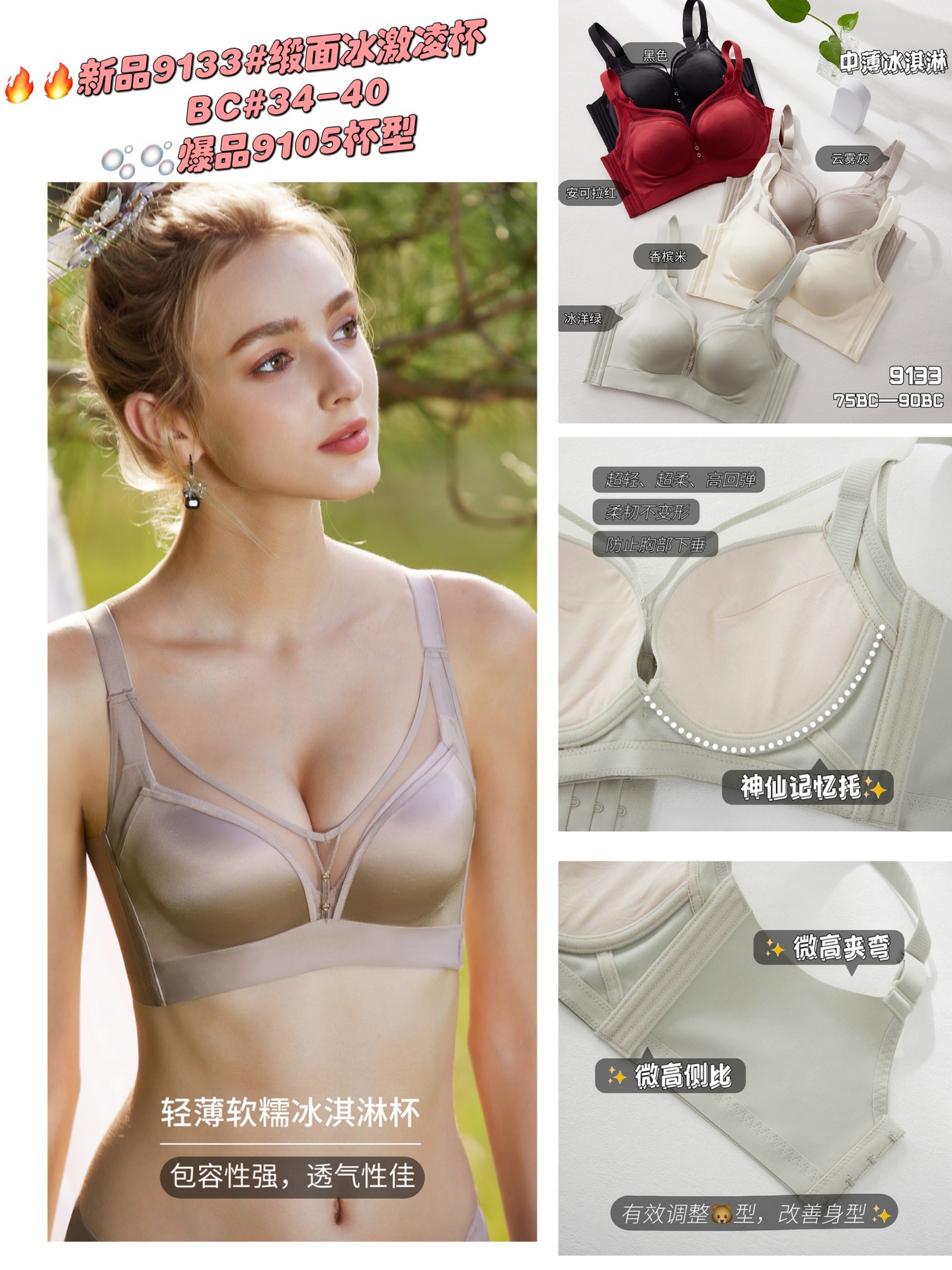 비고 비밀 허니 속옷 9133 아이스크림 중간 얇은 컵 메모리 소프트 브레이커 푸시 업 처짐 방지 조정 액세서리 유방 브래지어스토어 가기