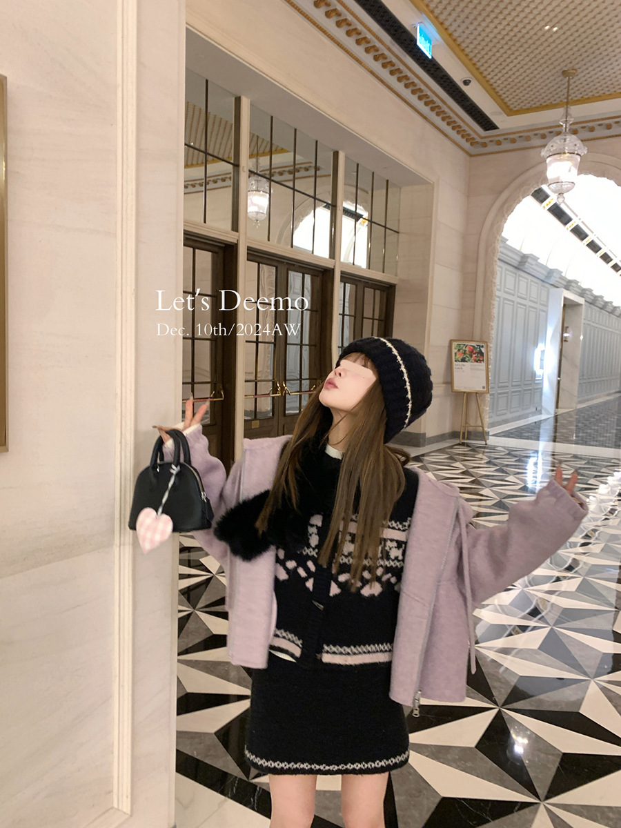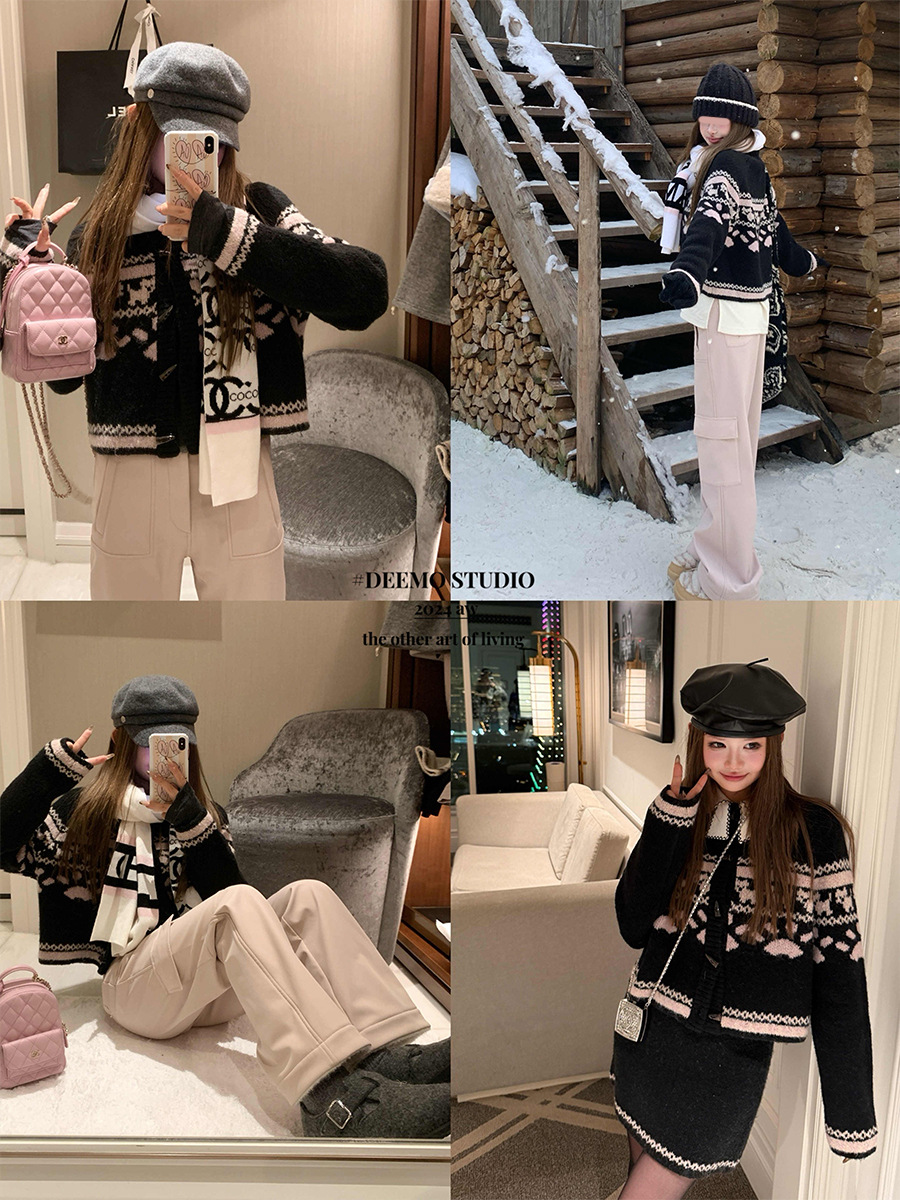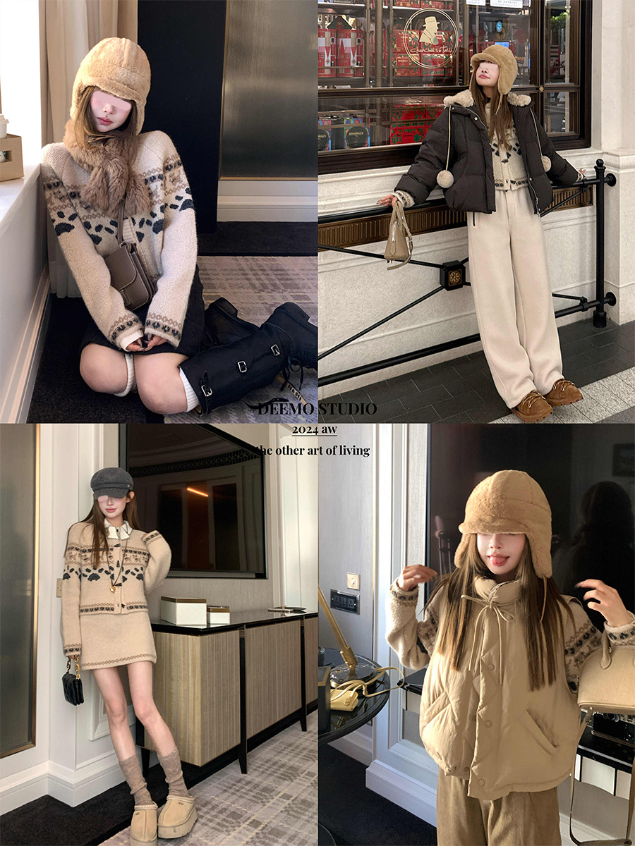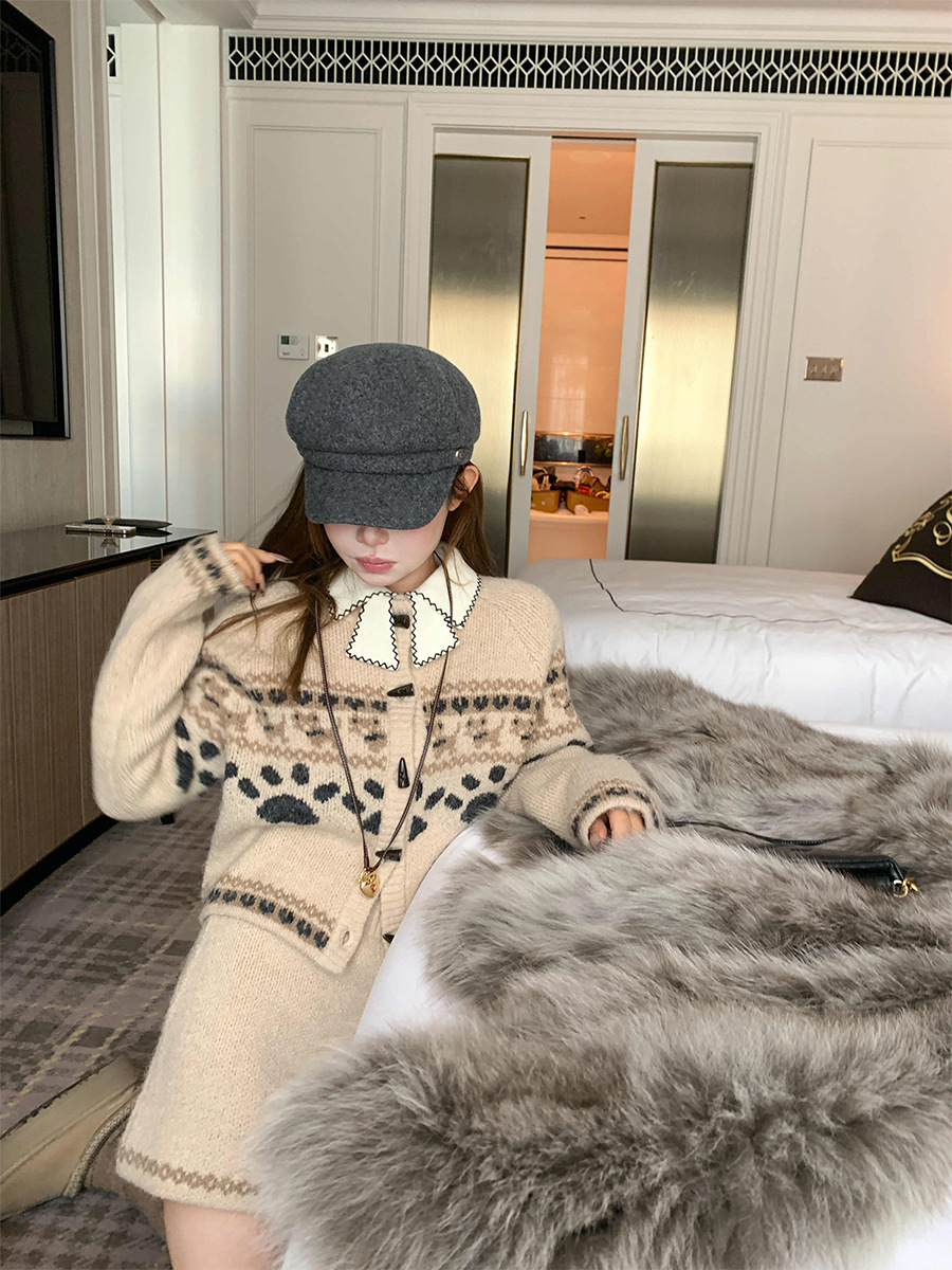 DEEMO STUDIO [선물 블라인드 박스] 휴일 느낌 섬 강아지 스웨터 세트 겨울 니트 투피스 세트
