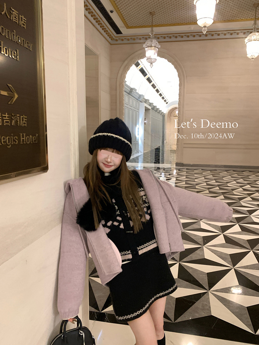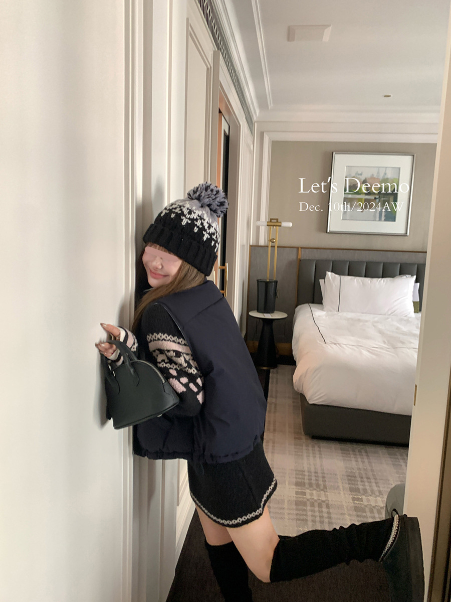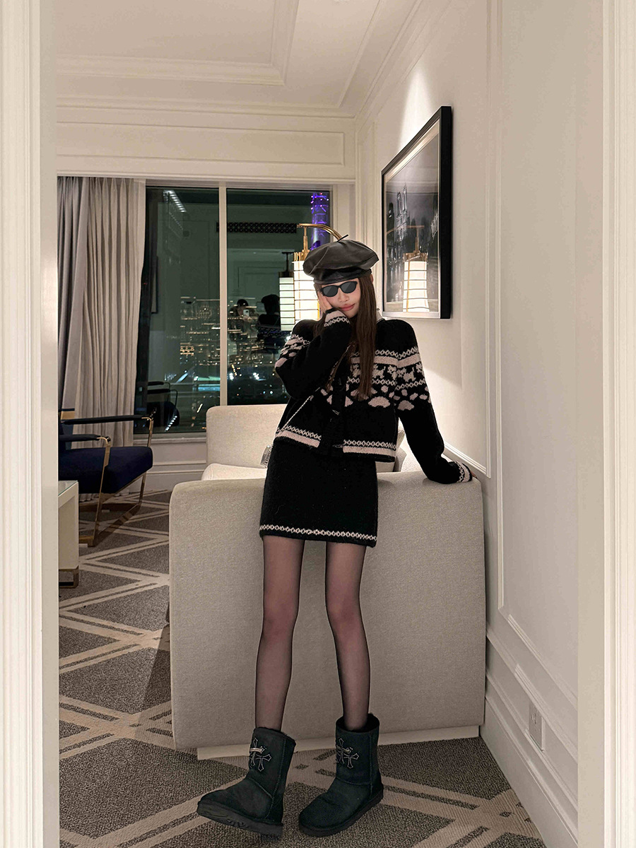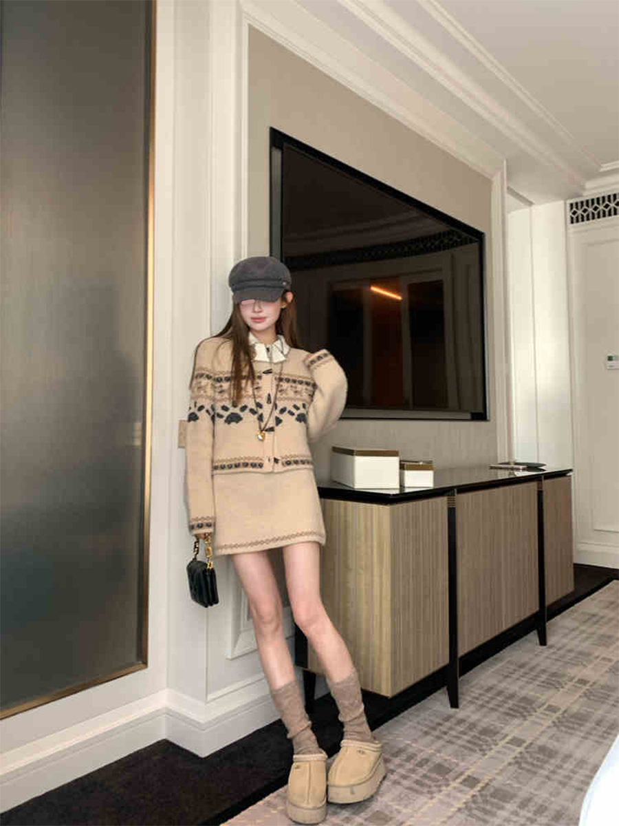 DEEMO STUDIO [선물 블라인드 박스] 휴일 느낌 섬 강아지 스웨터 세트 겨울 니트 투피스 세트