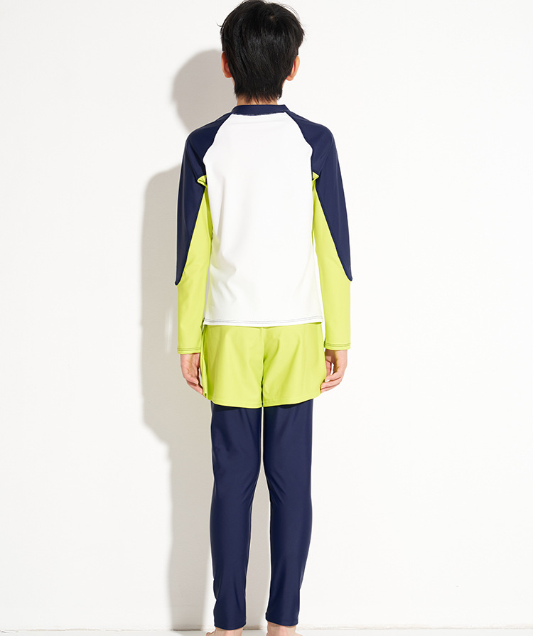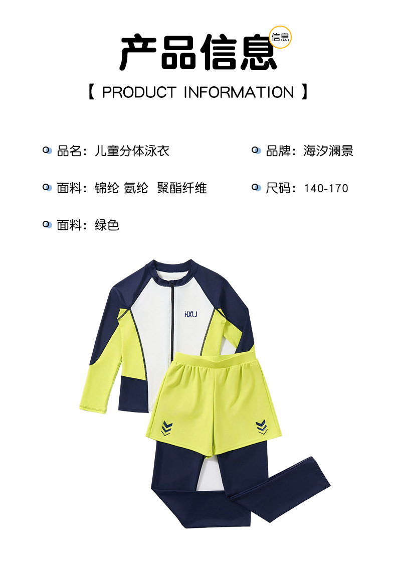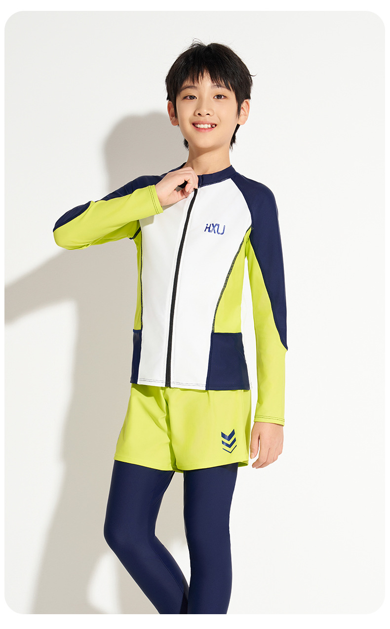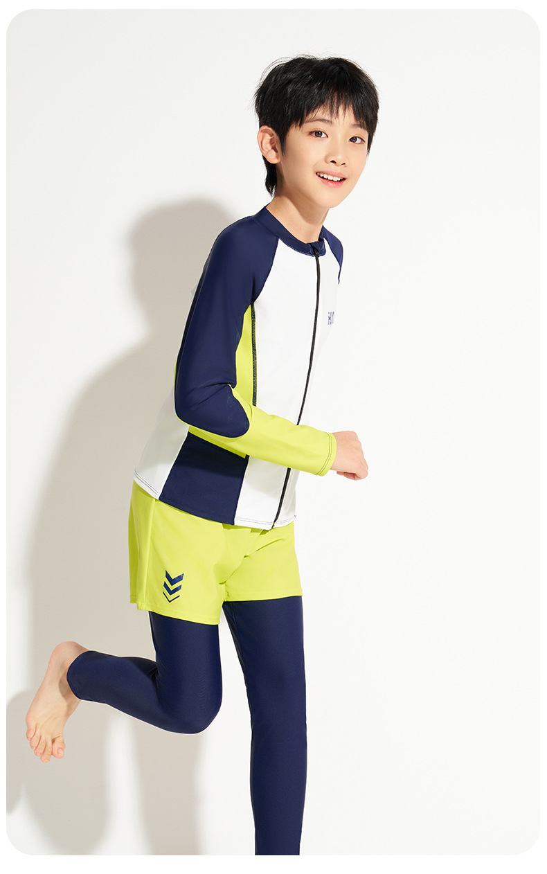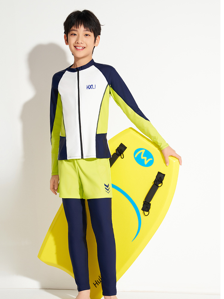 하이시 란징 2025 새로운 어린이 수영복 선스크린 긴 소매 바지 분할 2 피스 세트 소년 수영복 공장 배치