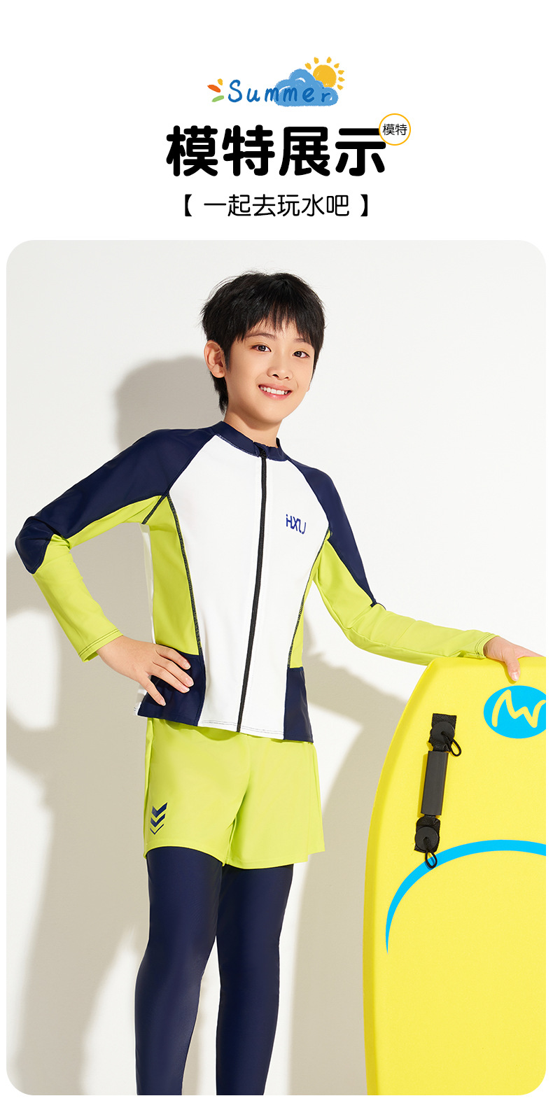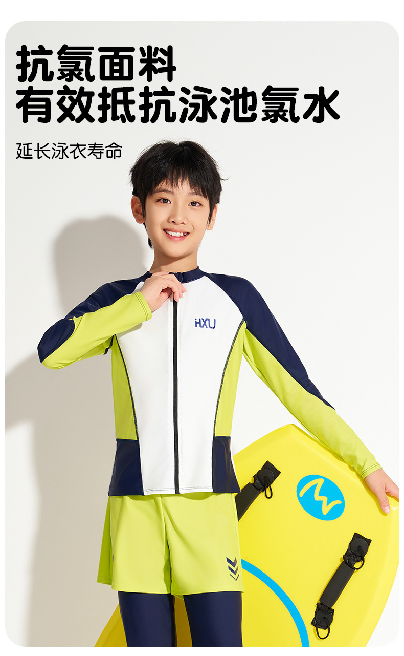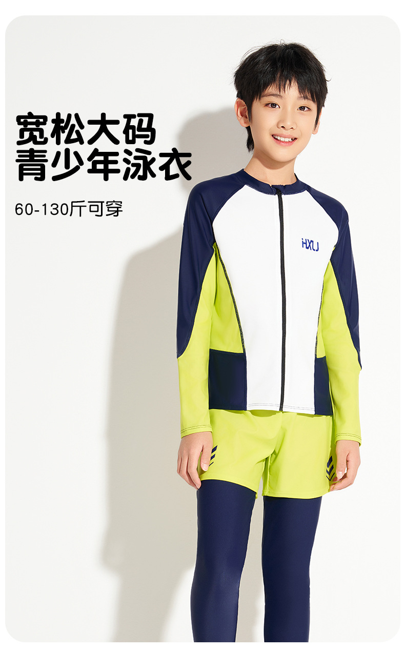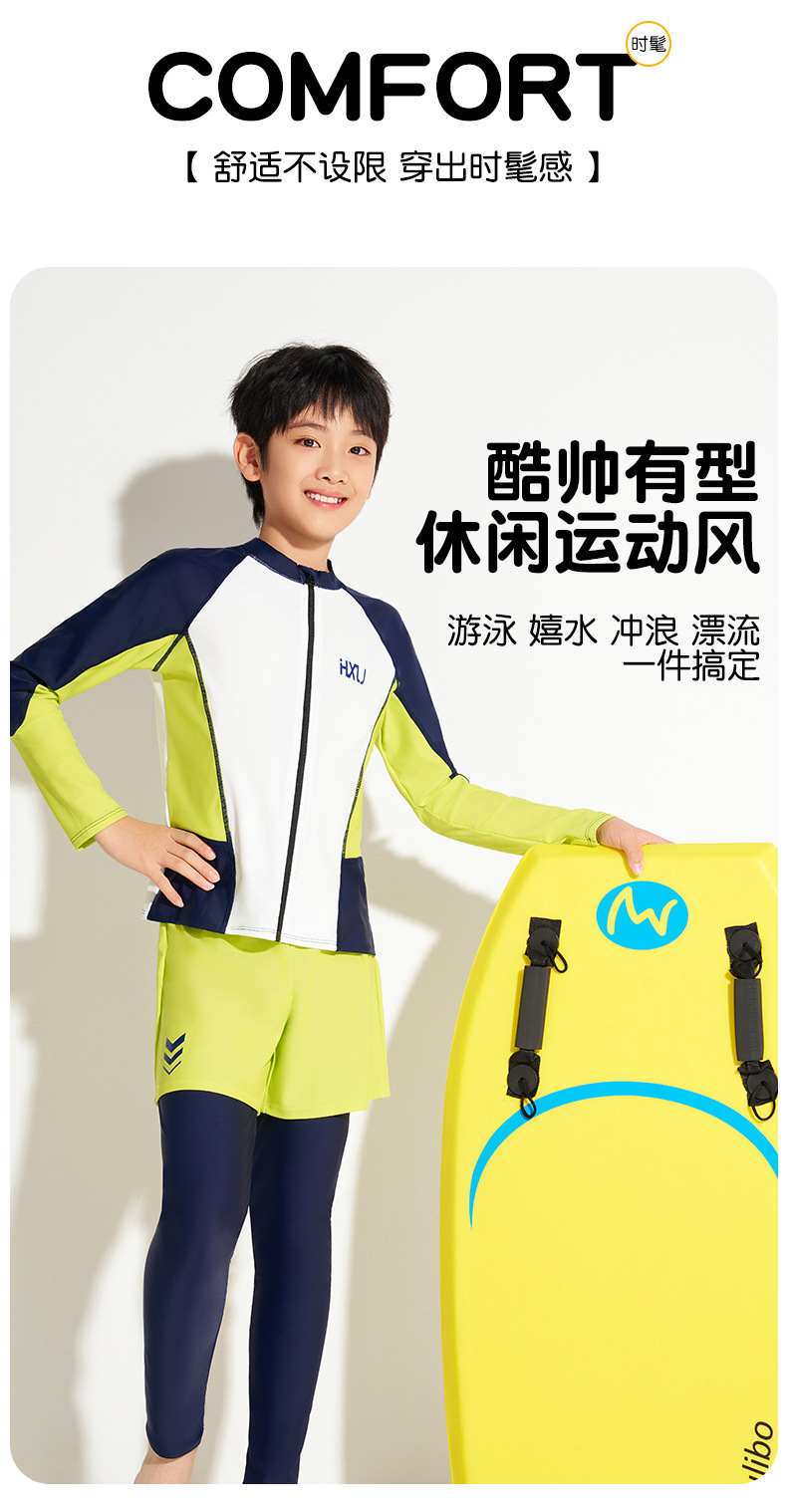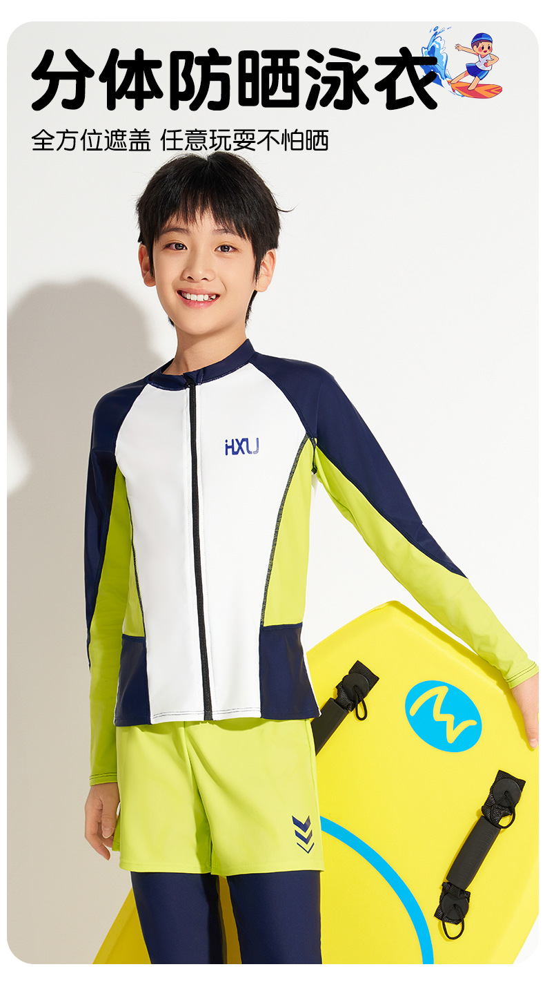 하이시 란징 2025 새로운 어린이 수영복 선스크린 긴 소매 바지 분할 2 피스 세트 소년 수영복 공장 배치스토어 가기