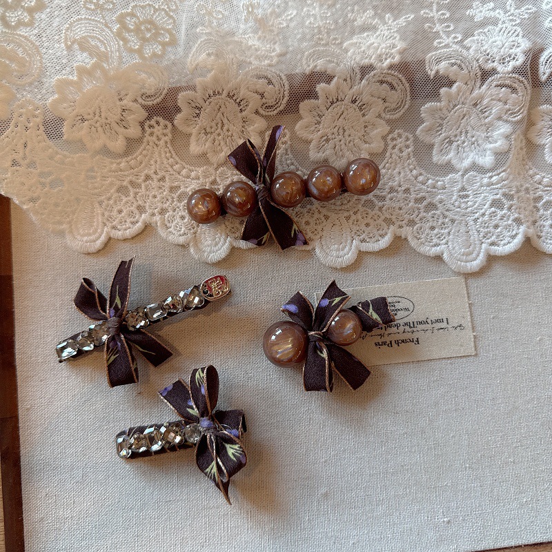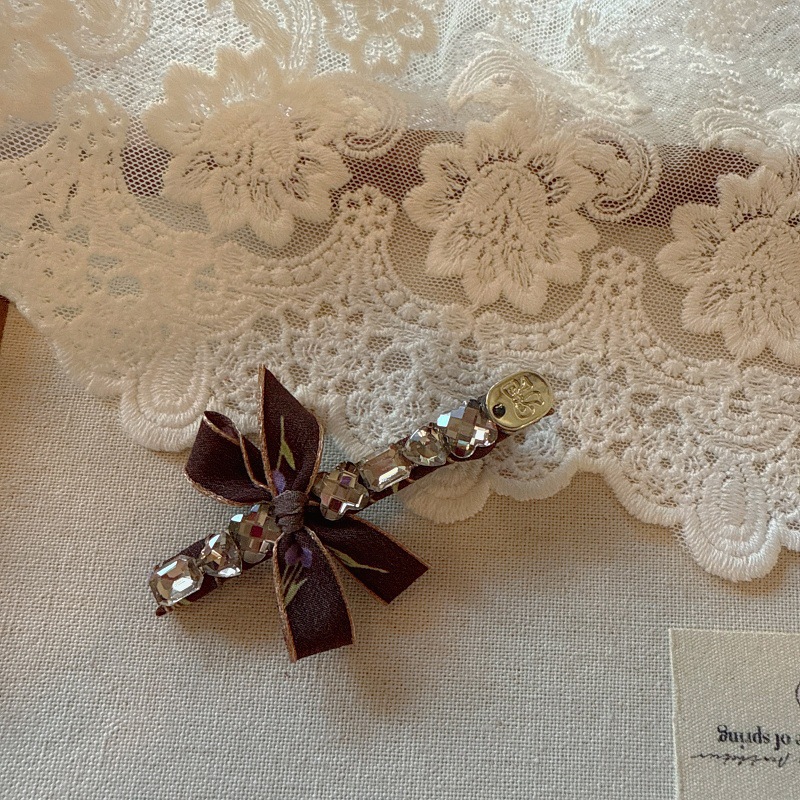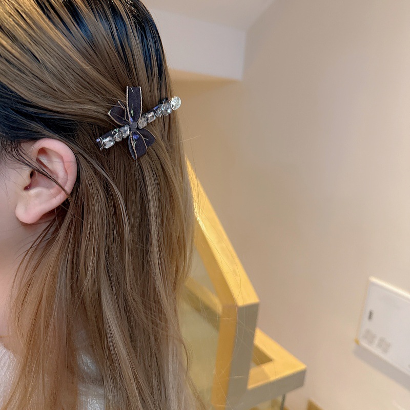 한국 기질 직물 활 라인 스톤 헤어핀 사이드 클립 고급 센스 한 단어 클립 뱅 헤어핀 백 헤드 헤드웨어