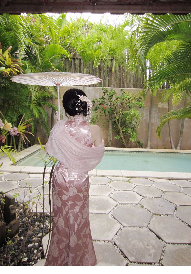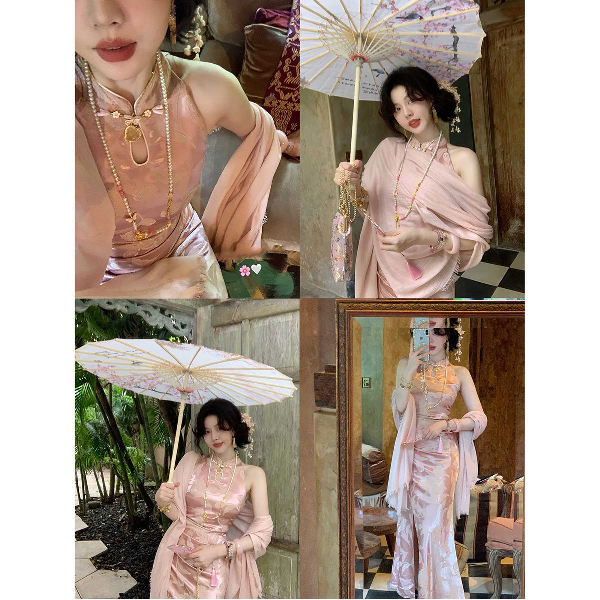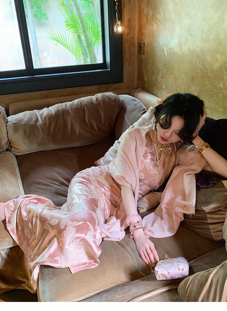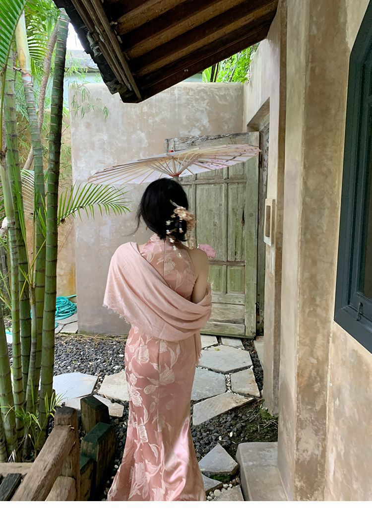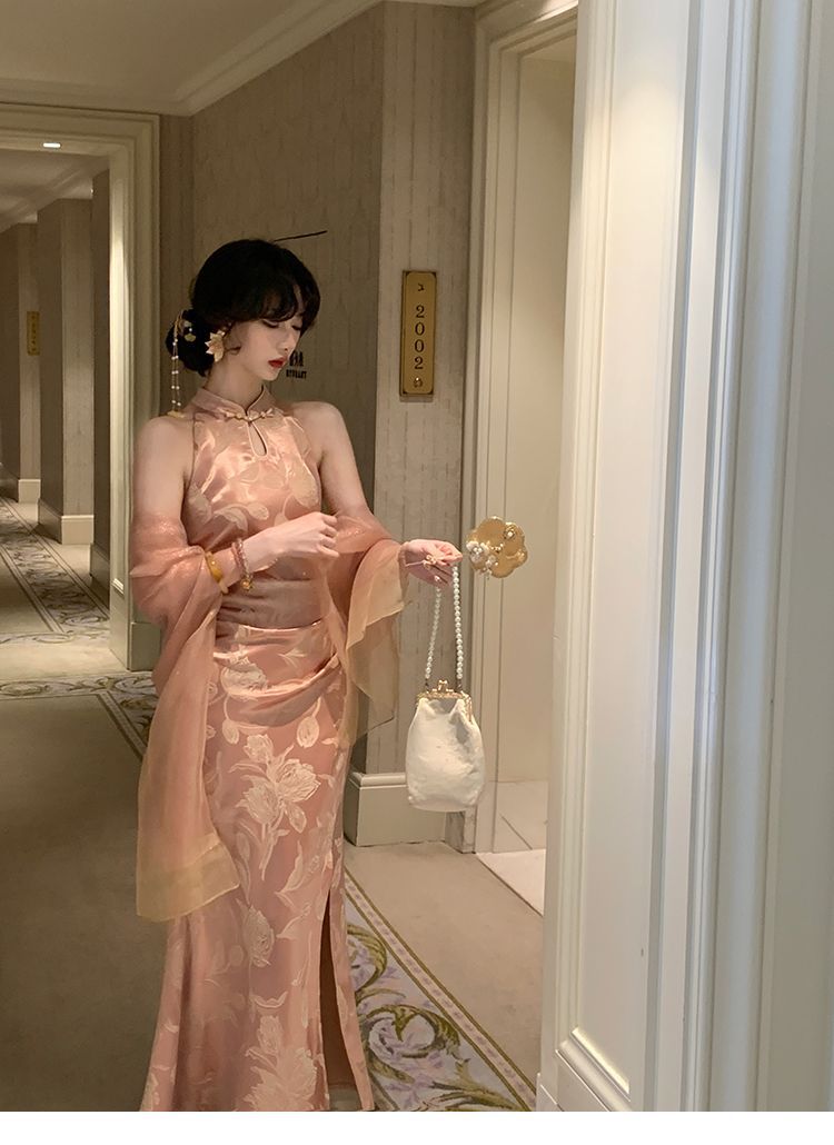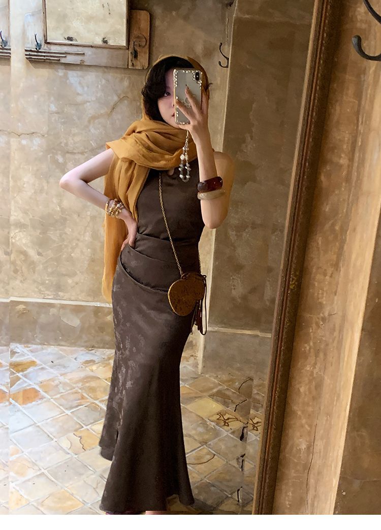 아름다운 강남 뷰티 2025 여름 새로운 중국 스타일 수정 원피스 섹시한 민소매 긴 청삼 원피스 세트스토어 가기