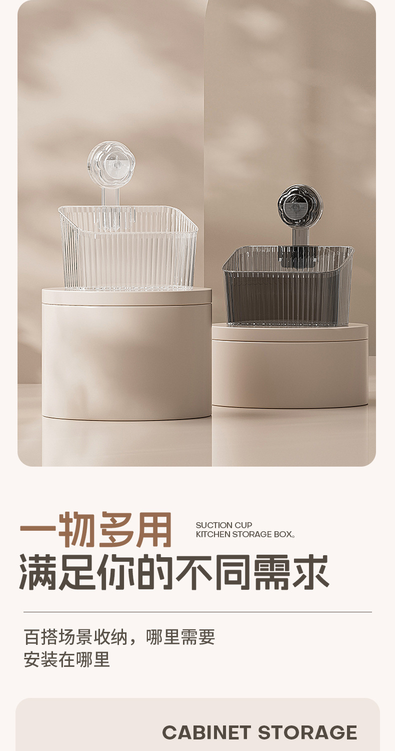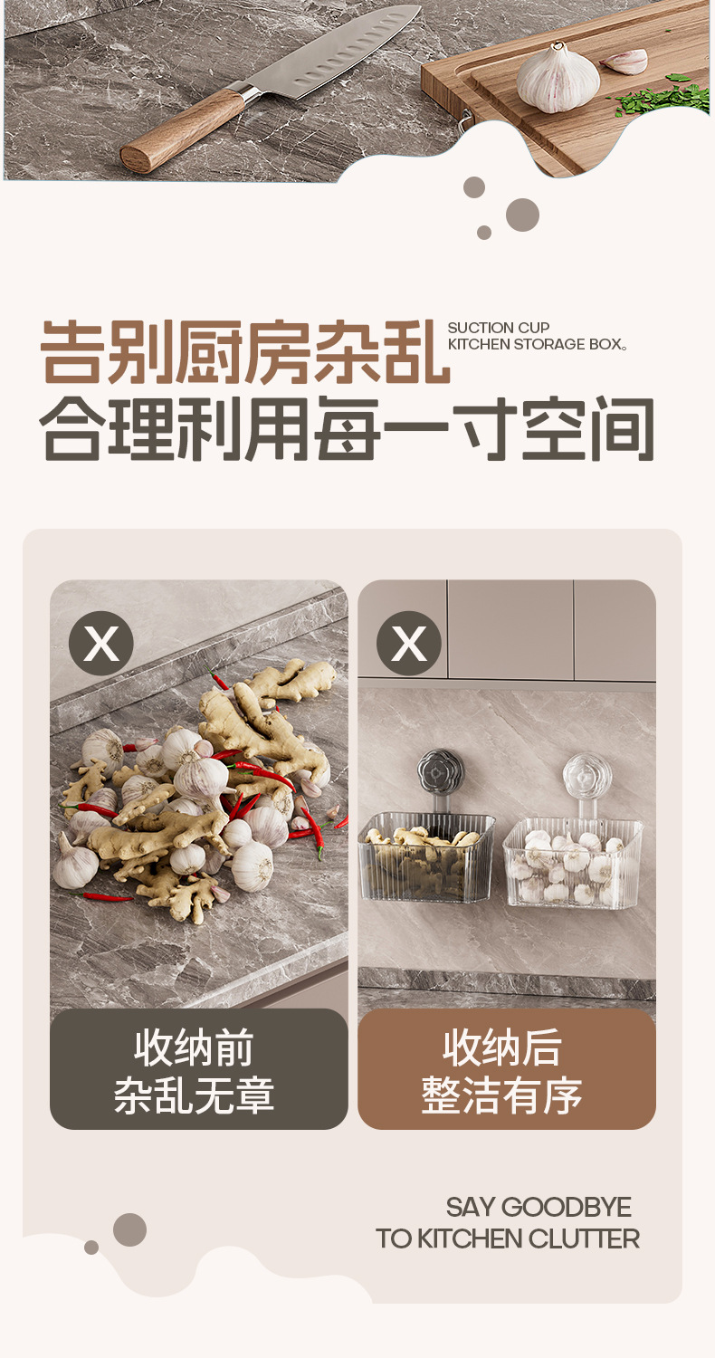 • 투명한 흰색 흡입 컵 주방 보관함