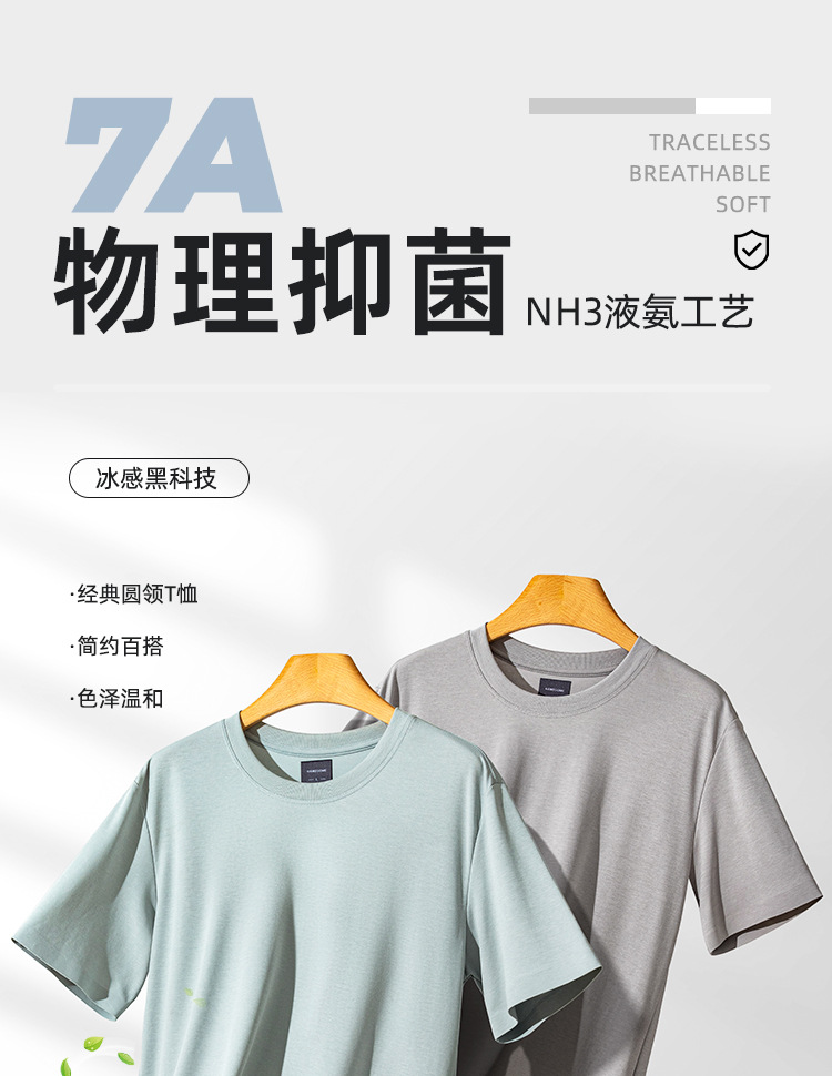 새로운 7A 항균 액체 암모니아 코튼 남자 여름 티셔츠 클래식 라운드 넥 심플 올 매치 반팔 티셔츠 스포츠베이스 셔츠