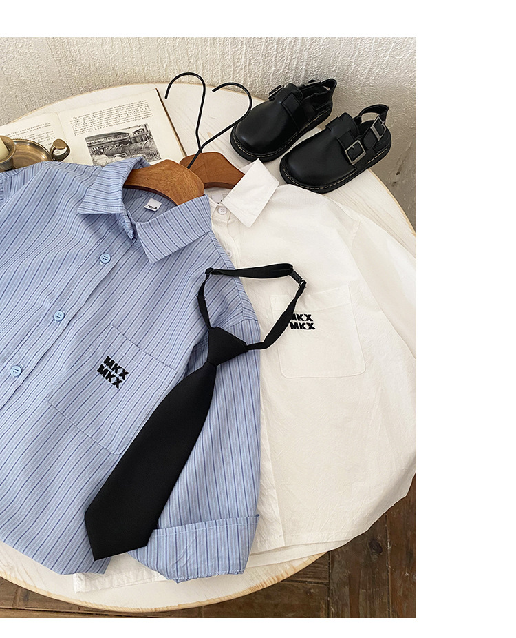 아동복 남아 순면 셔츠 스트라이프 상의 남자아이 봄 가을 2025 가을 신상 아동 셔츠 넥타이 증정