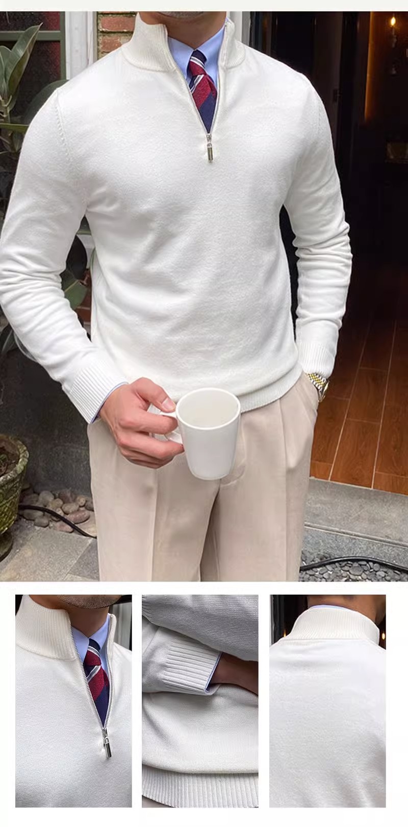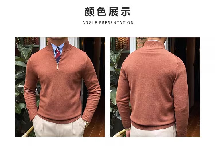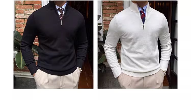 새로운 가을 및 겨울 폭발 남성 수직 칼라 지퍼 니트웨어 긴팔 스웨터 남성용 슬림 핏 풀오버 베이스 스웨터스토어 가기