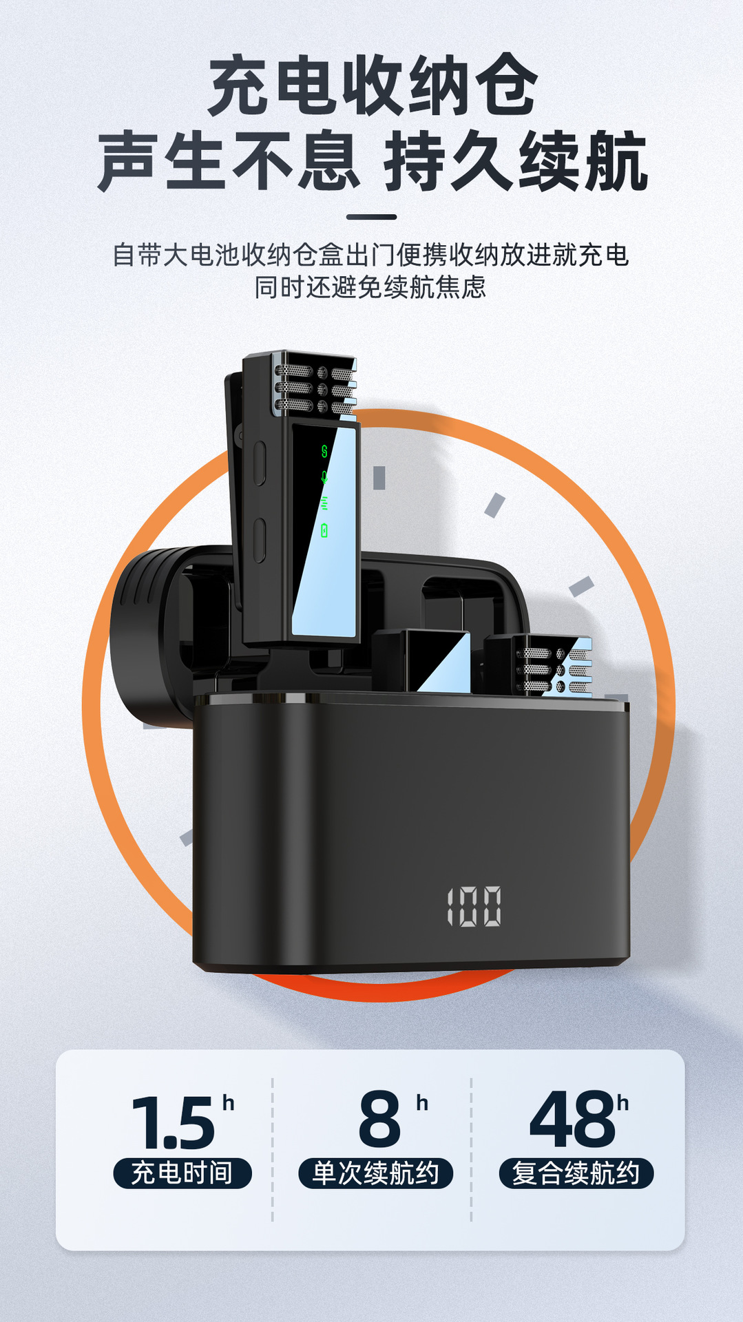 J6无线领夹麦克风产品规格信息如下(一拖二):