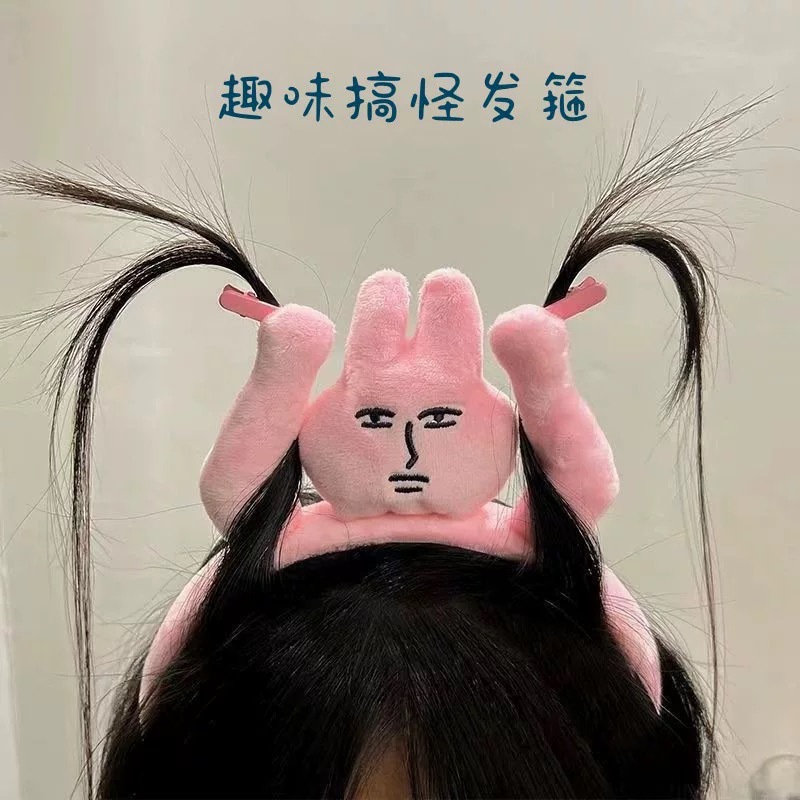 핑크 토끼 헤어 밴드 재미 재미있는 머리띠 잡아 Bangs 헤어 번들 만화 헤드웨어 2025