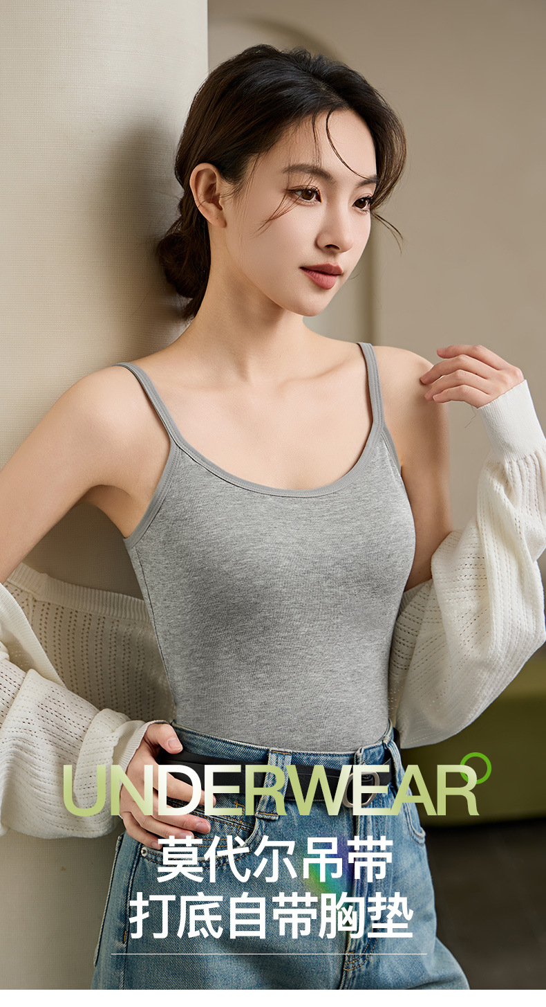 모달 조정 가능한 카미 솔 여성 벨트 가슴 패드 원피스 스레드 플러스 사이즈 베이스 셔츠 아름다운 뒷면 외부 착용스토어 가기