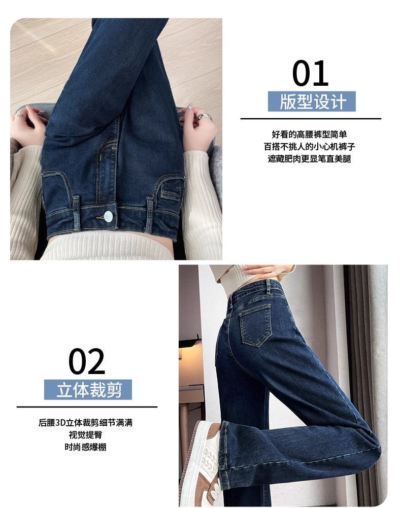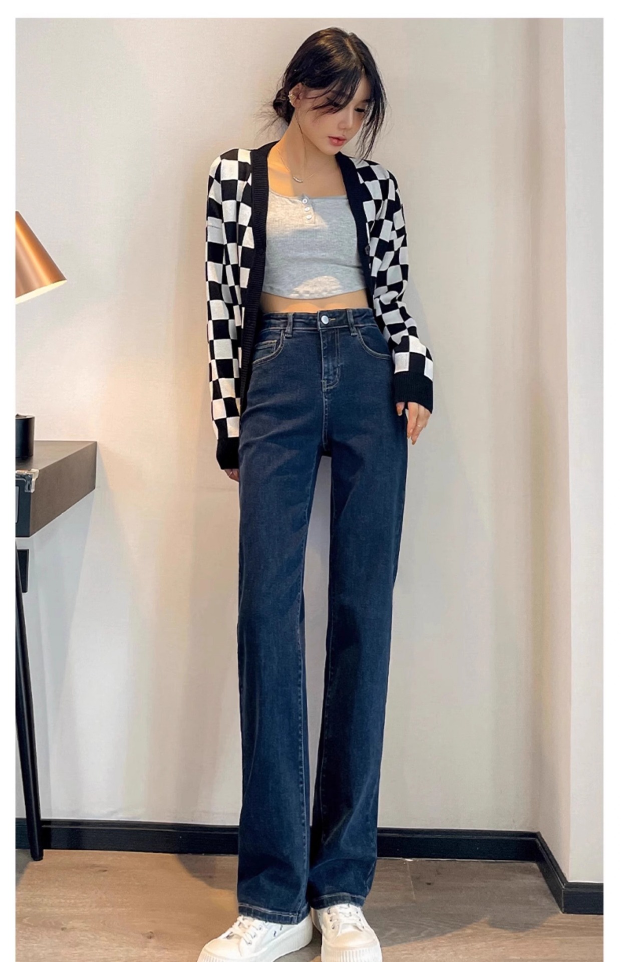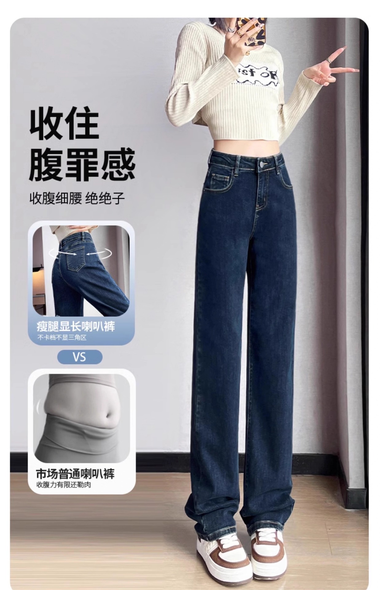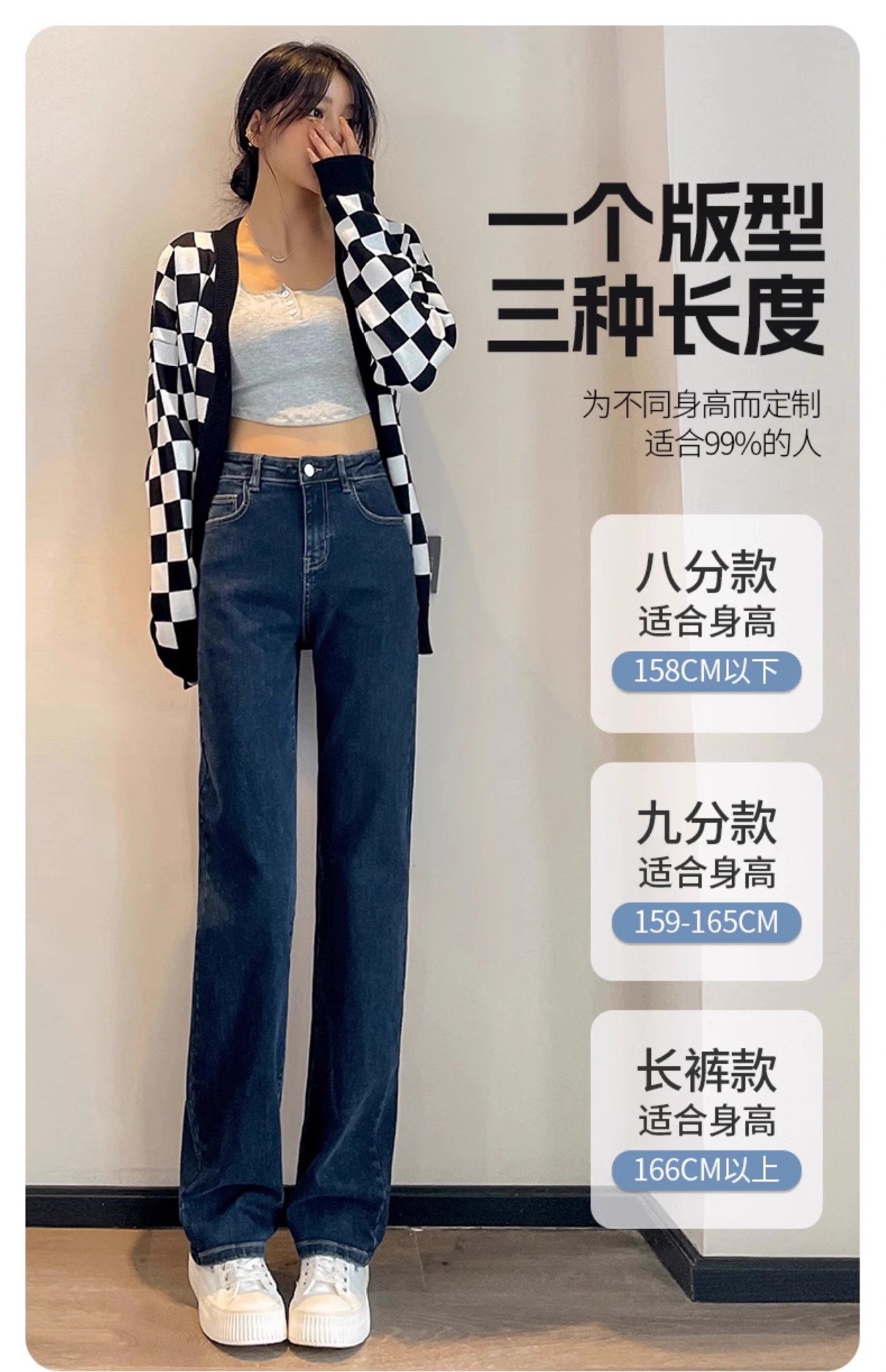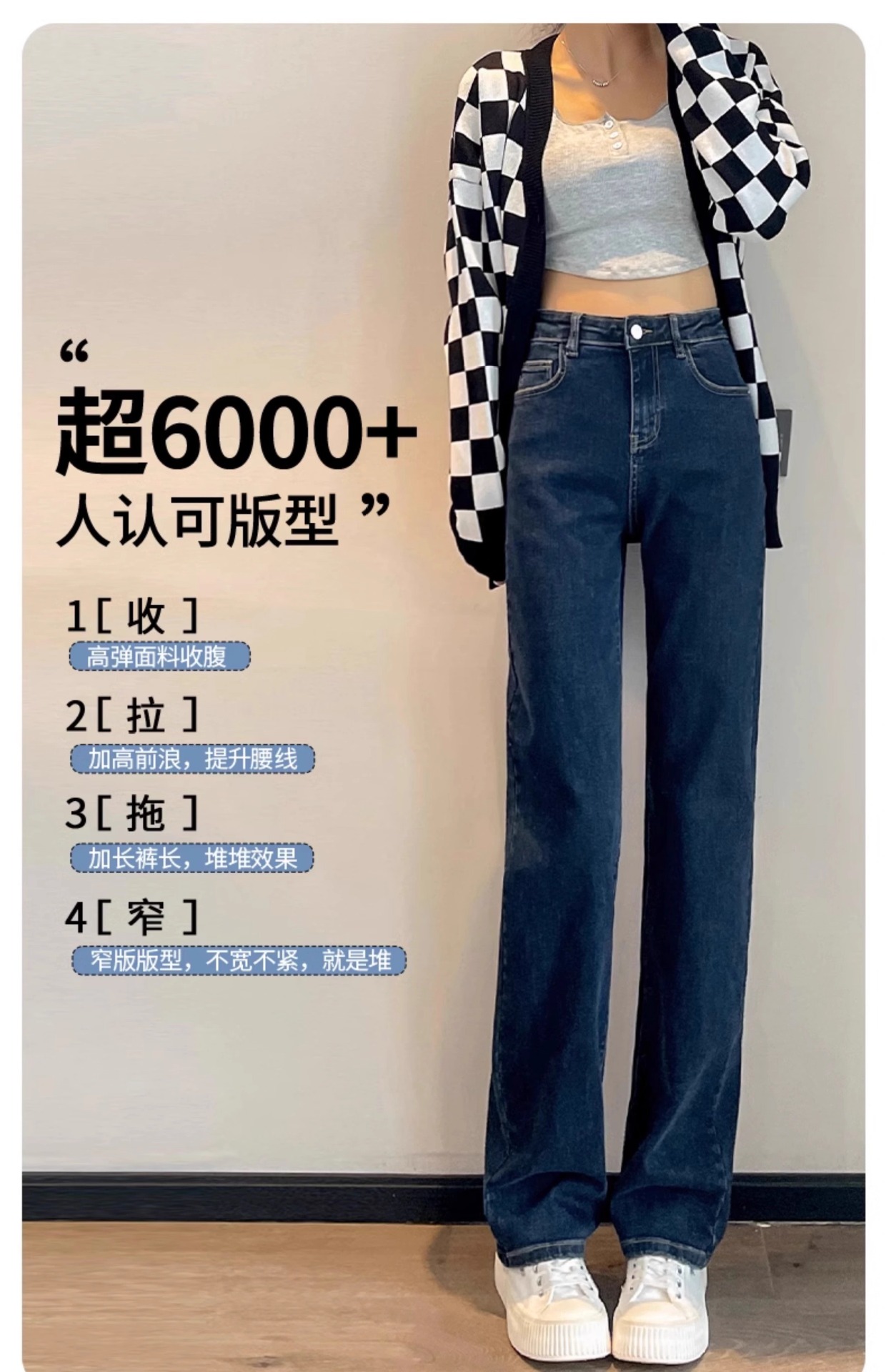 좁은 직선 청바지 여성의 봄과 가을 2025 새로운 폭발 높은 허리 슬리밍 9 점 작은 봄 넓은 다리 바지스토어 가기
