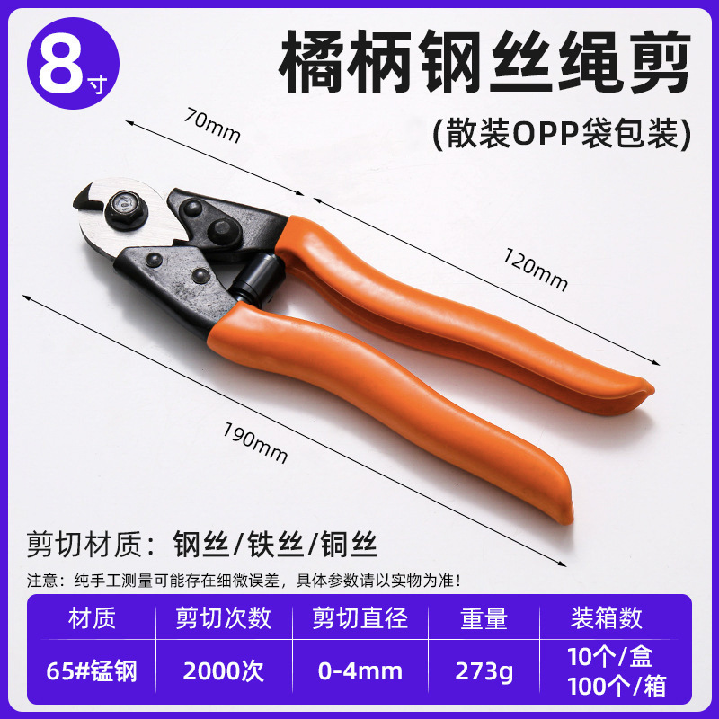 • 핫추천 8inch L 오렌지손잡이 와이어로프가위 (로고없음) 1박스 10개, 개당 80개, 089kg