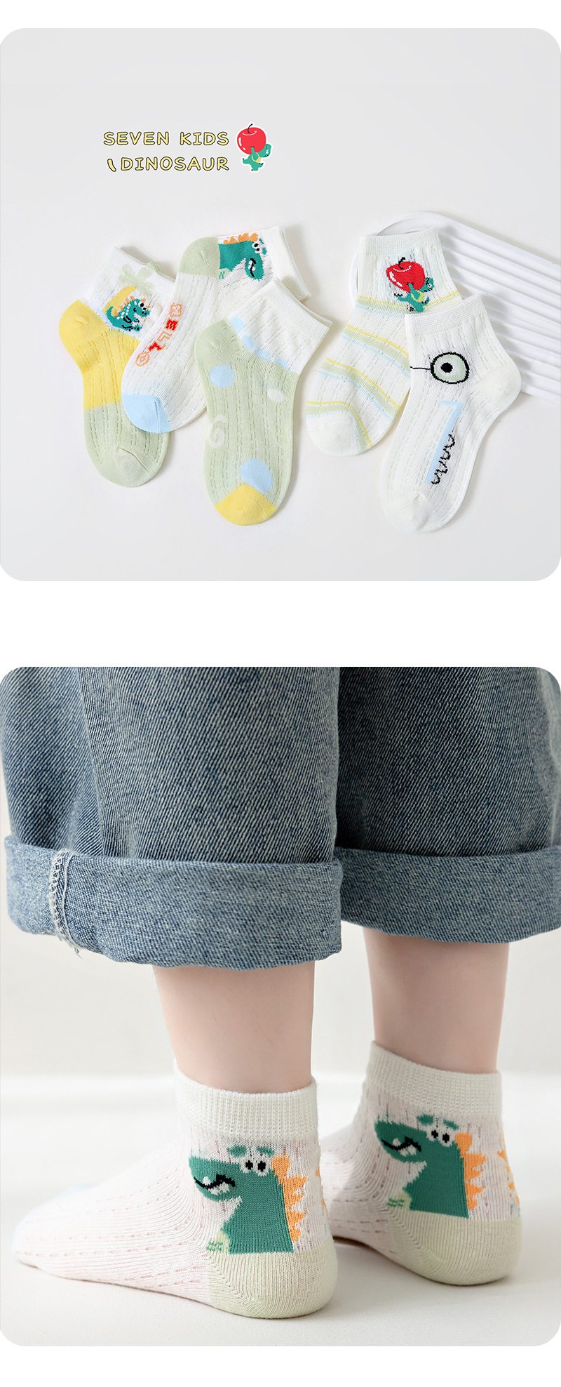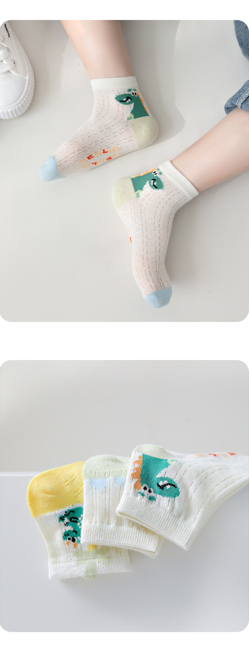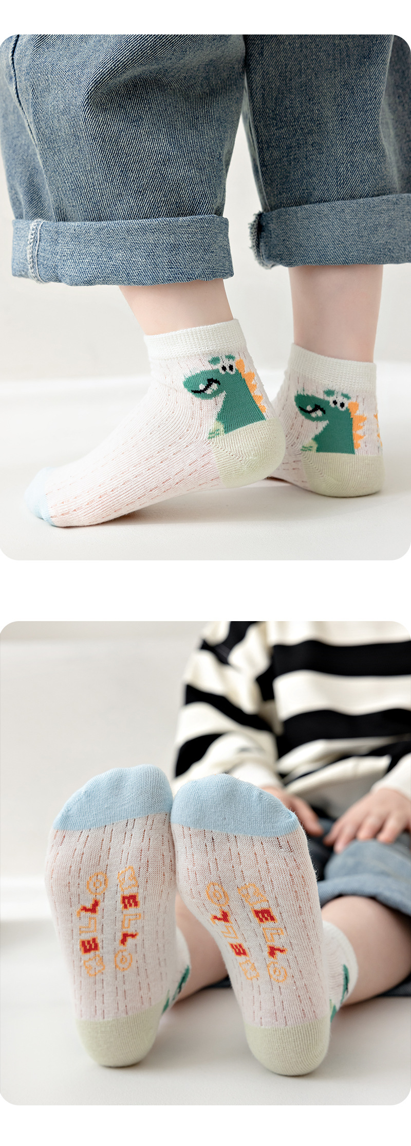 25 년 봄과 여름 새로운 어린이 메쉬 양말 제조 업체 도매 소년과 소녀 만화 공룡 얇은 통기성 짧은 보트 양말스토어 가기