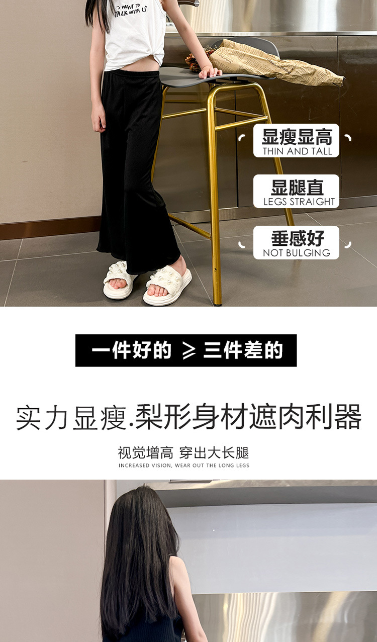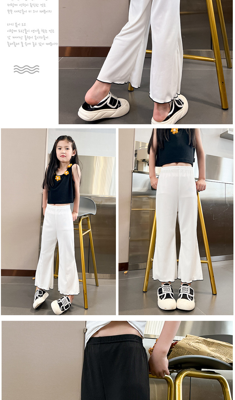여자 플라워 바지 여름 얇은 외모 한국 스타일 아이스 실크 어린이 느슨한 캐주얼 바지 서양식 아기 소녀 레깅스
