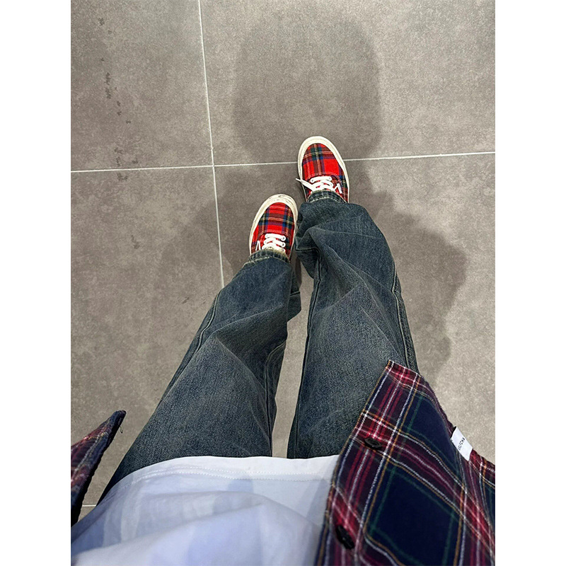 새로운 폭발성 다크 블루 스트레치 청바지 남성 가을 겨울 세탁 빈티지 패션 브랜드 바이브 바지 미국 스타일 하이 다이파스토어 가기