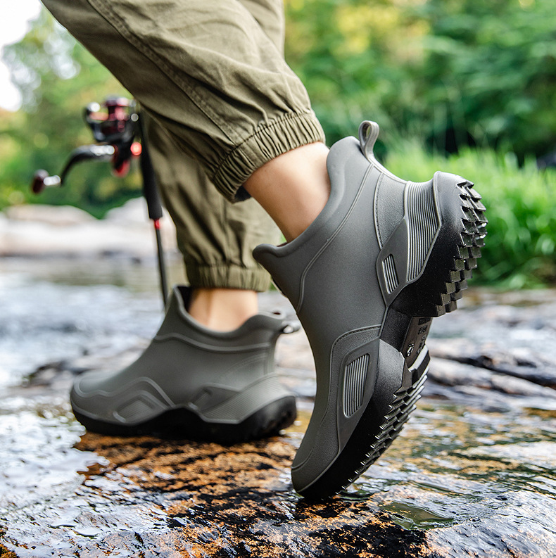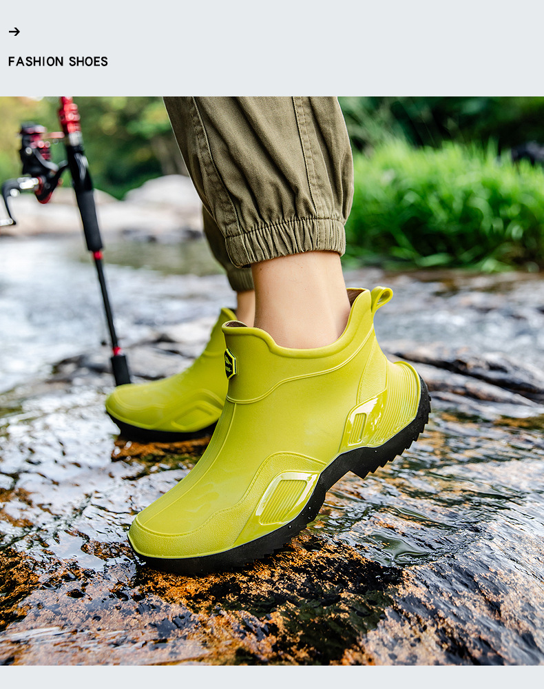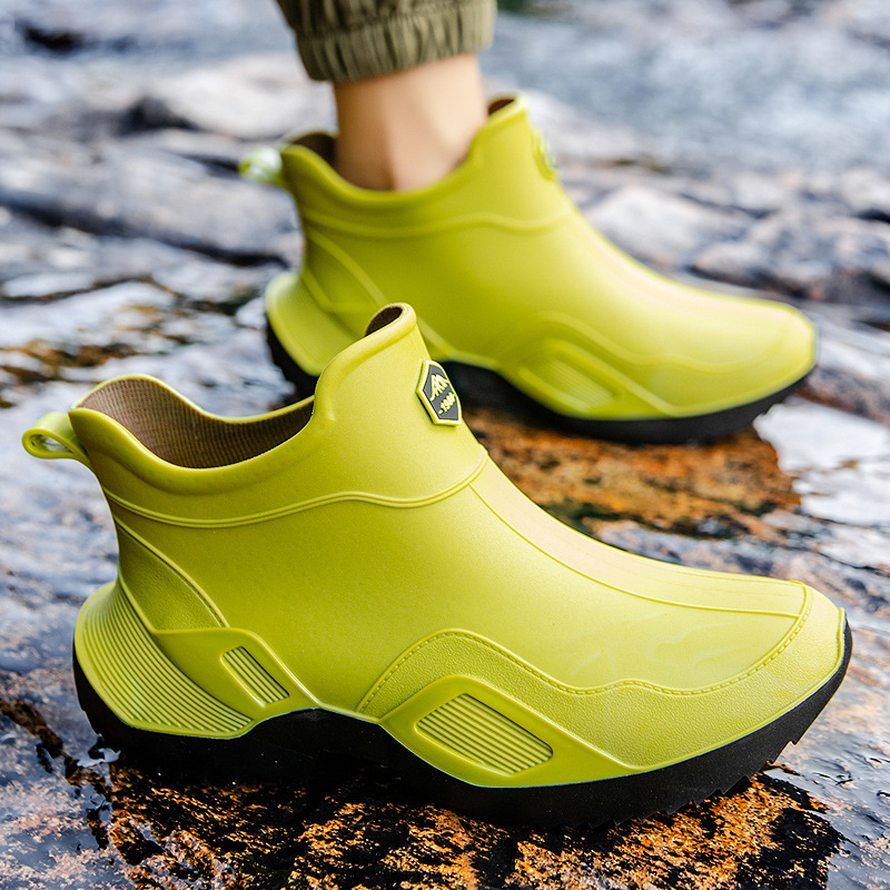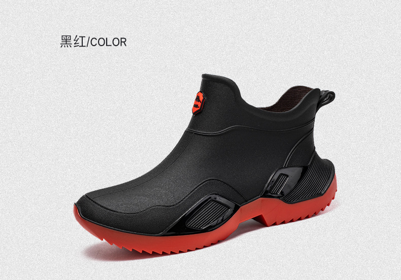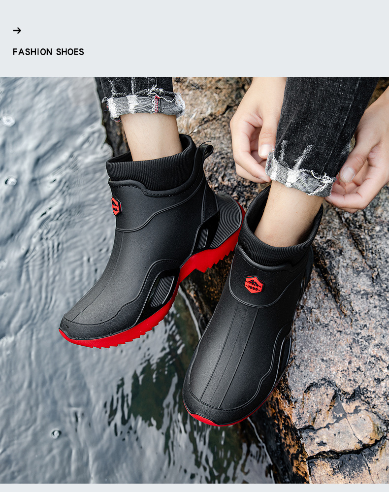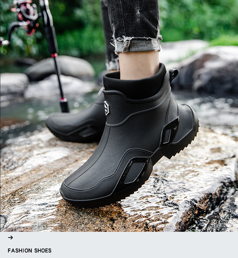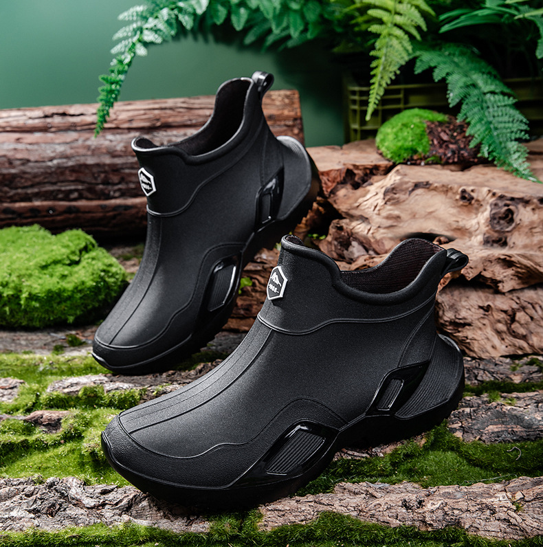 장화 남성용 짧은 튜브 방수 미끄럼 방지 야외 낚시 장화 남성용 주방 내유 작업 내마모성 검은 색 고무 신발