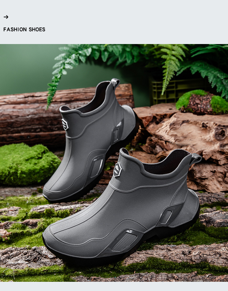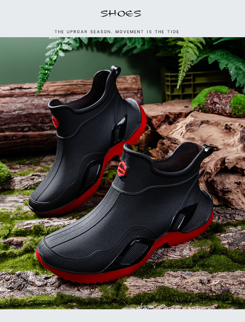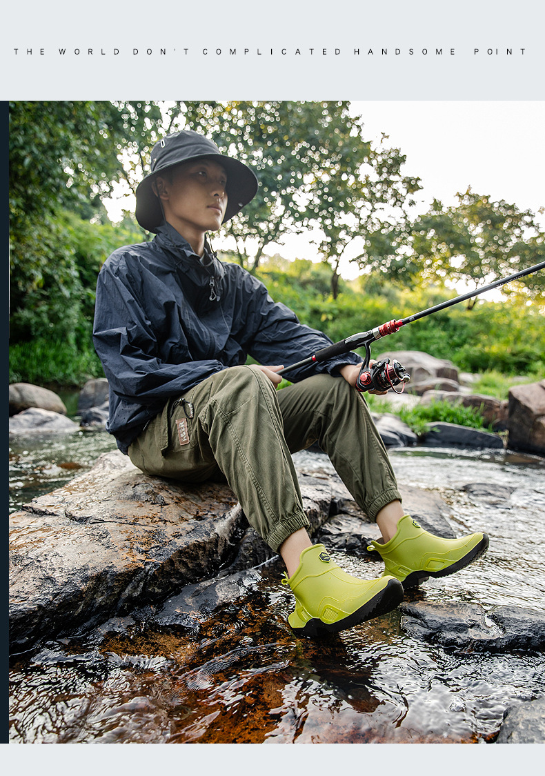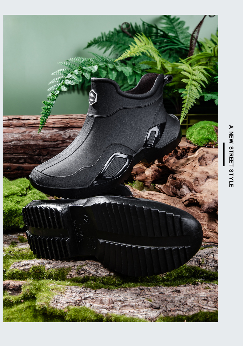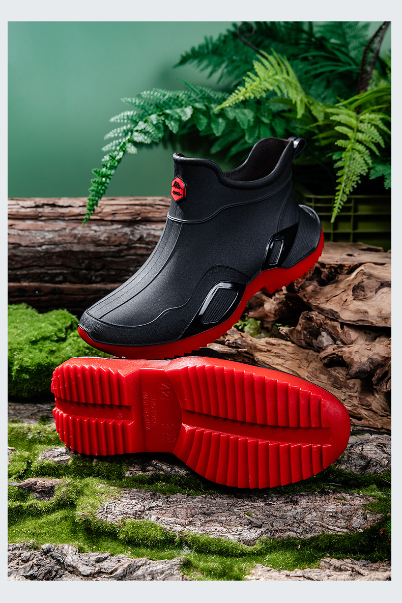 장화 남성용 짧은 튜브 방수 미끄럼 방지 야외 낚시 장화 남성용 주방 내유 작업 내마모성 검은 색 고무 신발