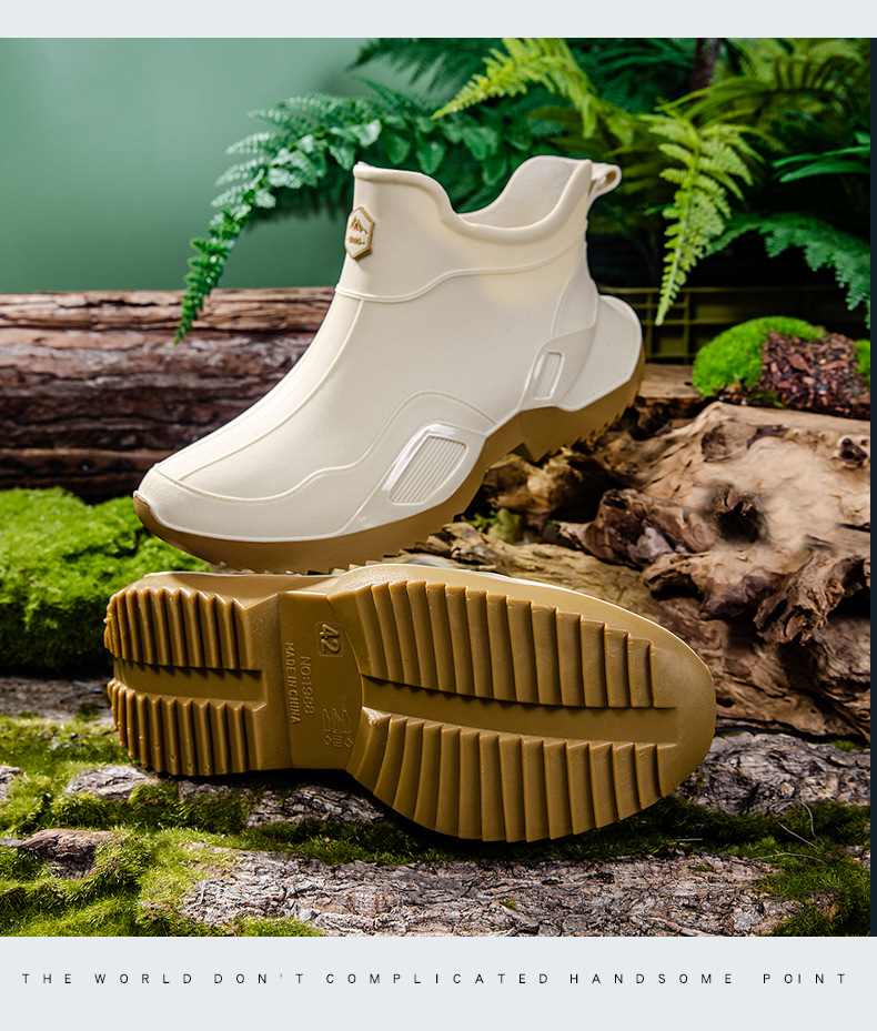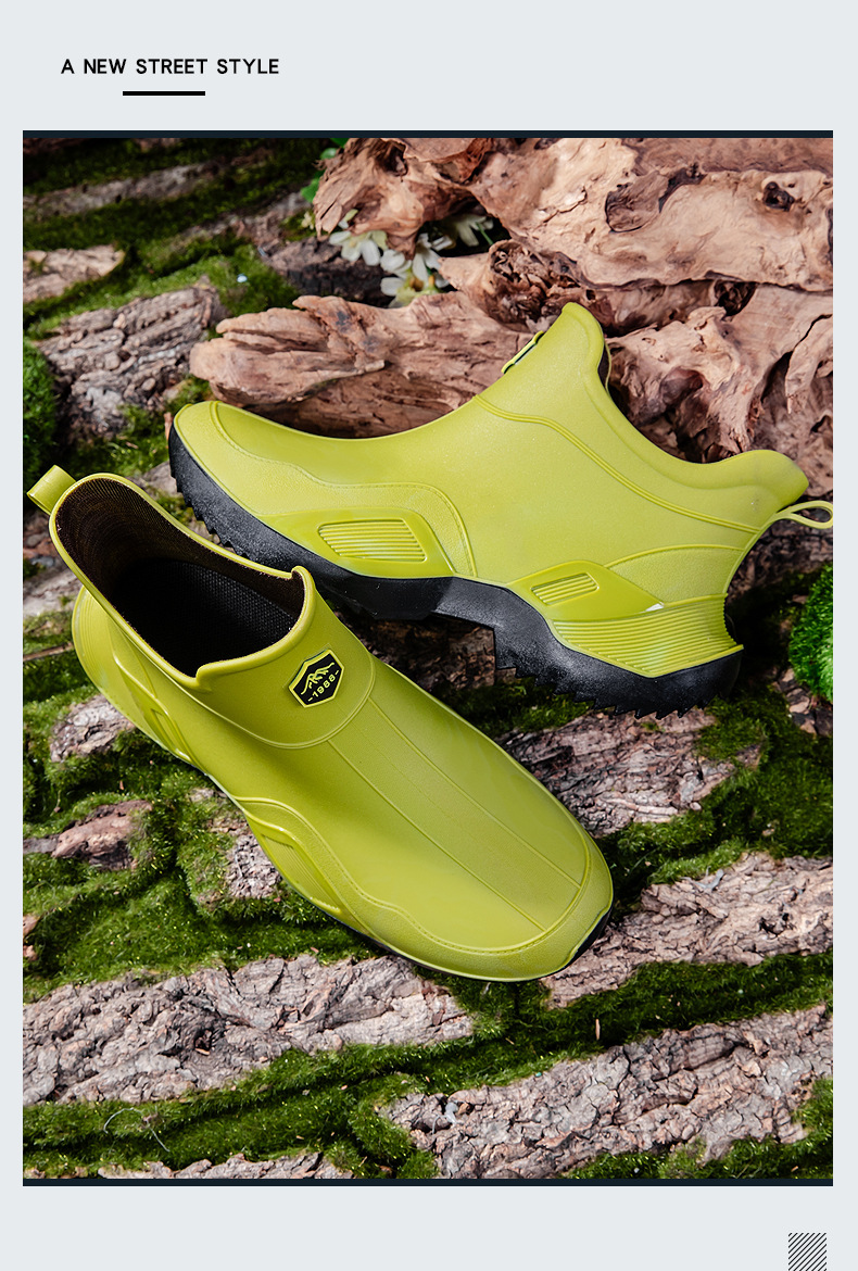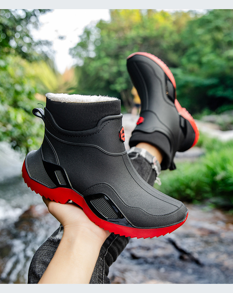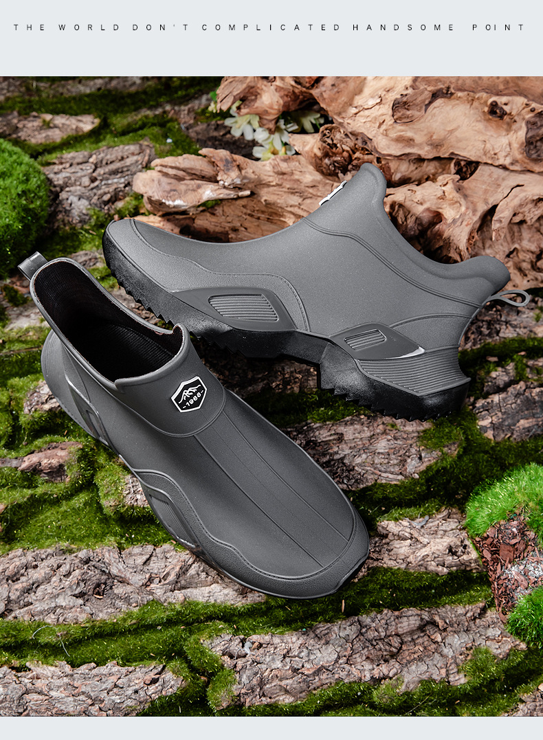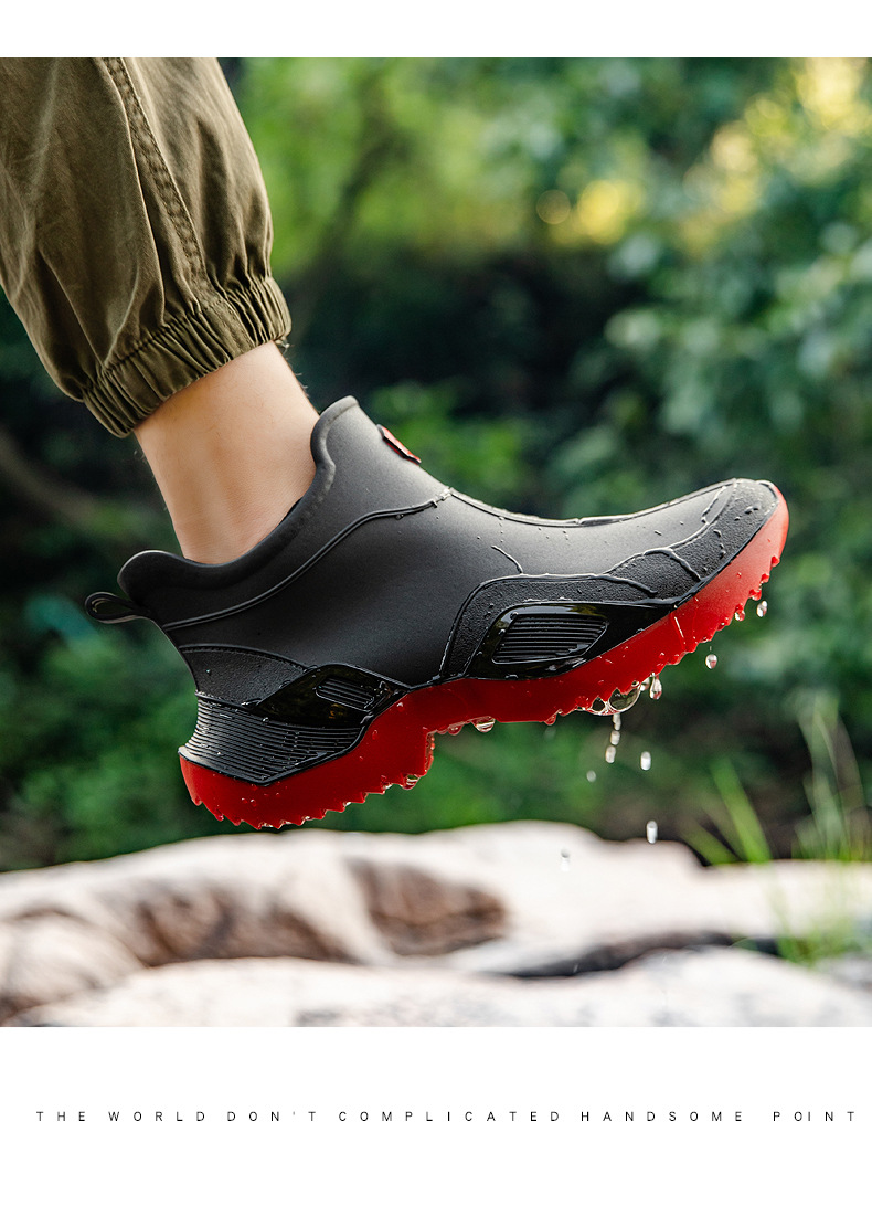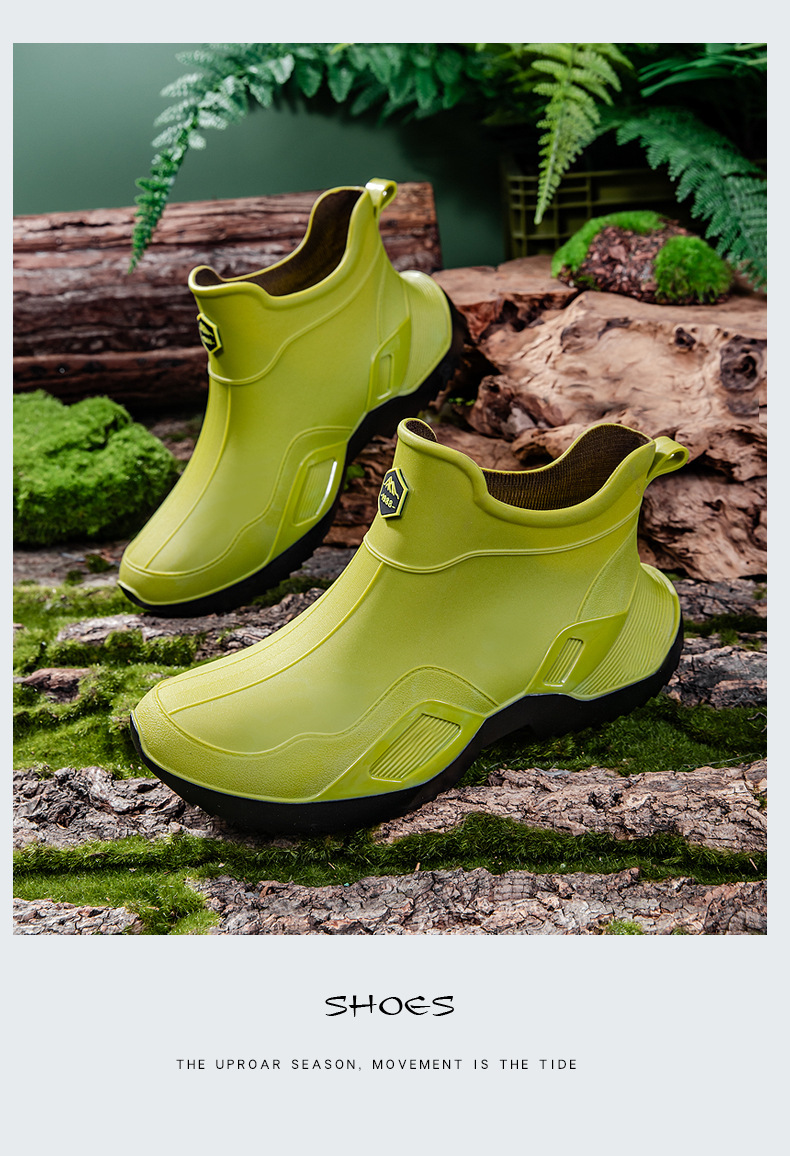 장화 남성용 짧은 튜브 방수 미끄럼 방지 야외 낚시 장화 남성용 주방 내유 작업 내마모성 검은 색 고무 신발