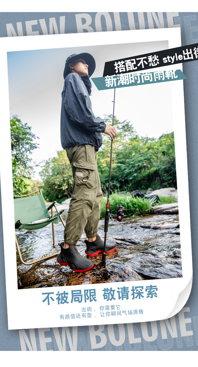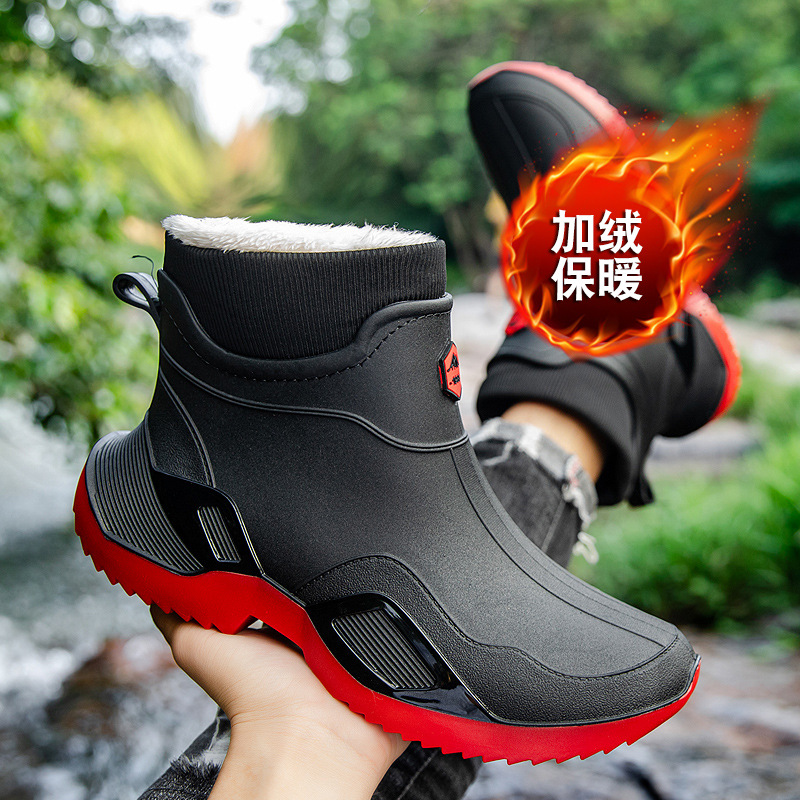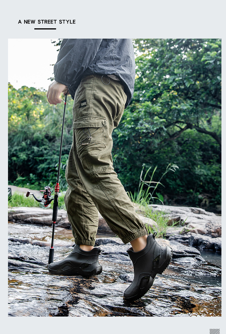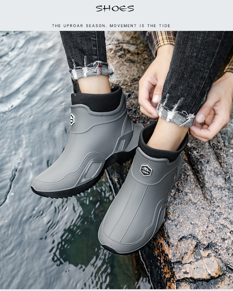 장화 남성용 짧은 튜브 방수 미끄럼 방지 야외 낚시 장화 남성용 주방 내유 작업 내마모성 검은 색 고무 신발스토어 가기