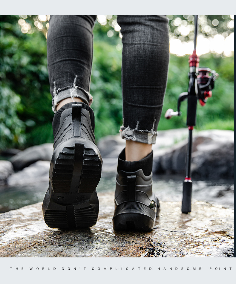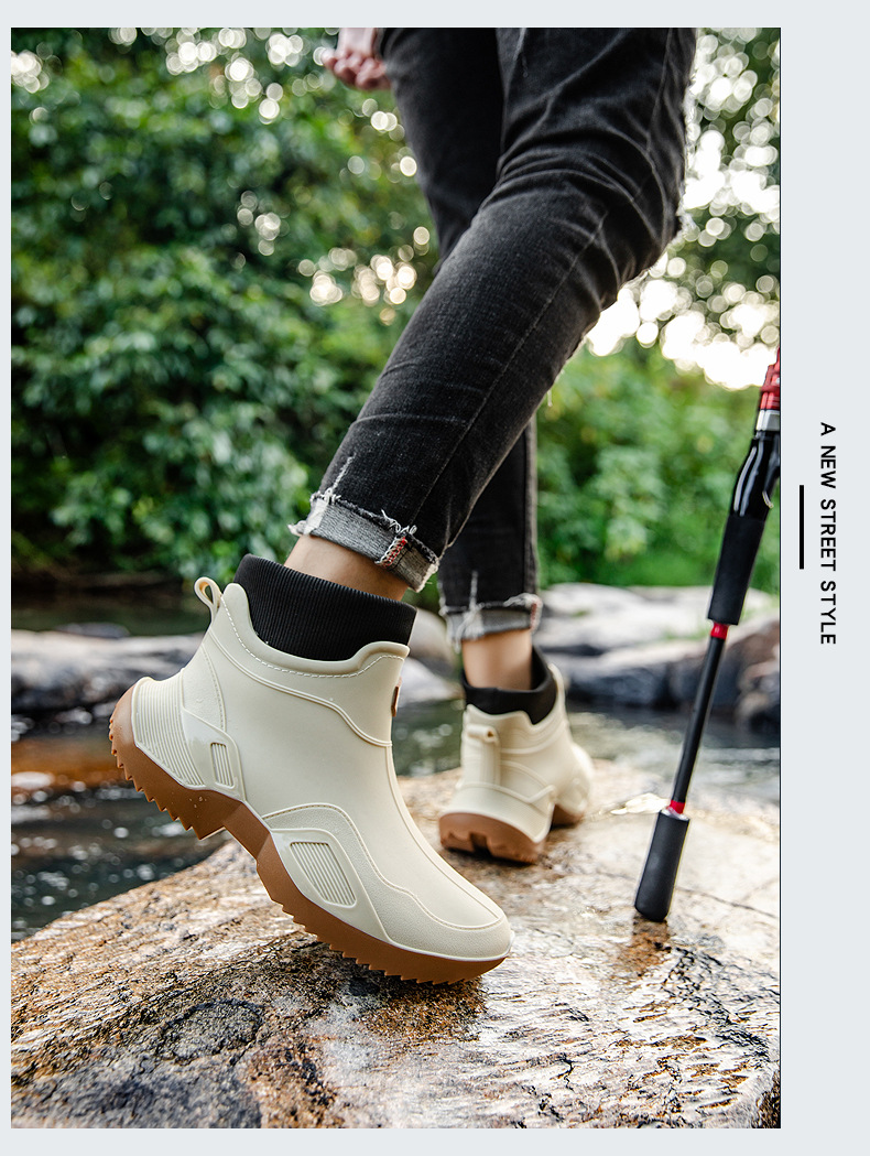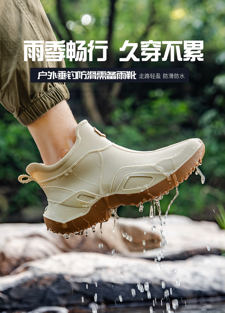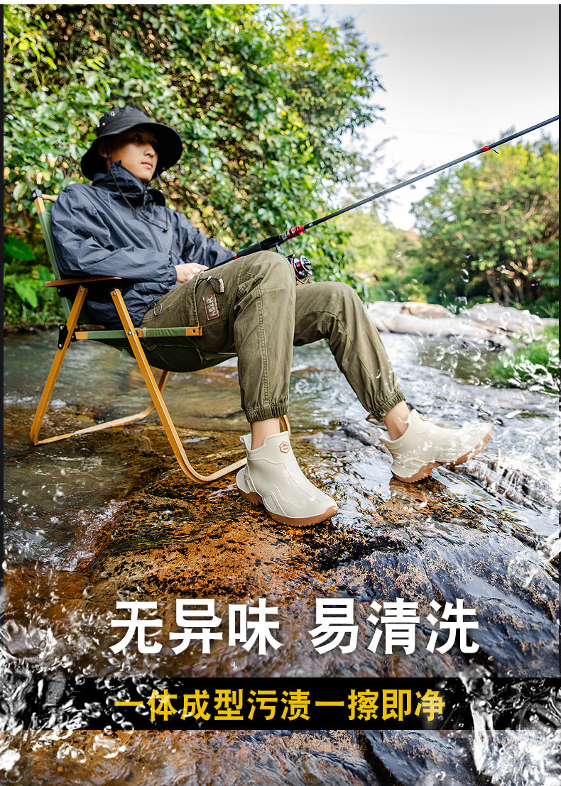 장화 남성용 짧은 튜브 방수 미끄럼 방지 야외 낚시 장화 남성용 주방 내유 작업 내마모성 검은 색 고무 신발스토어 가기