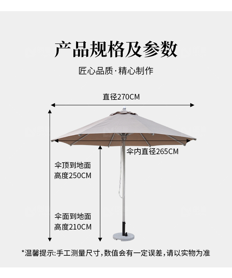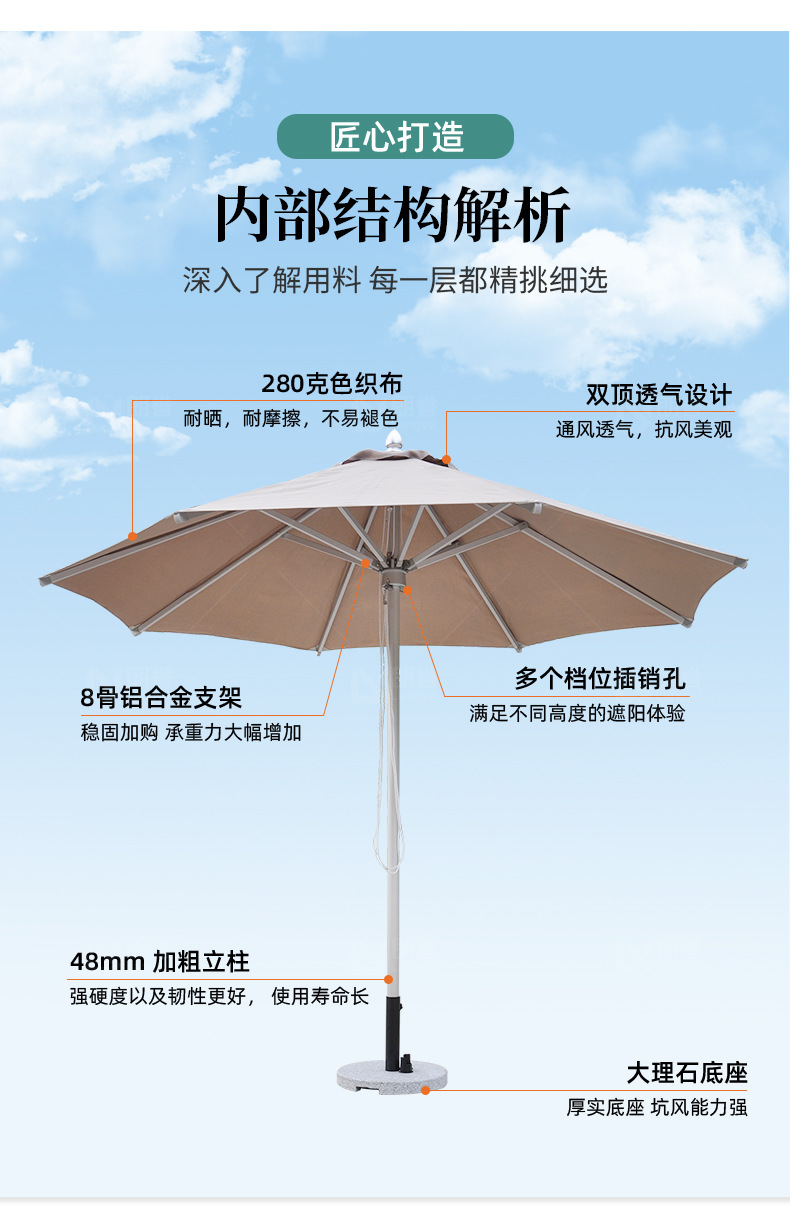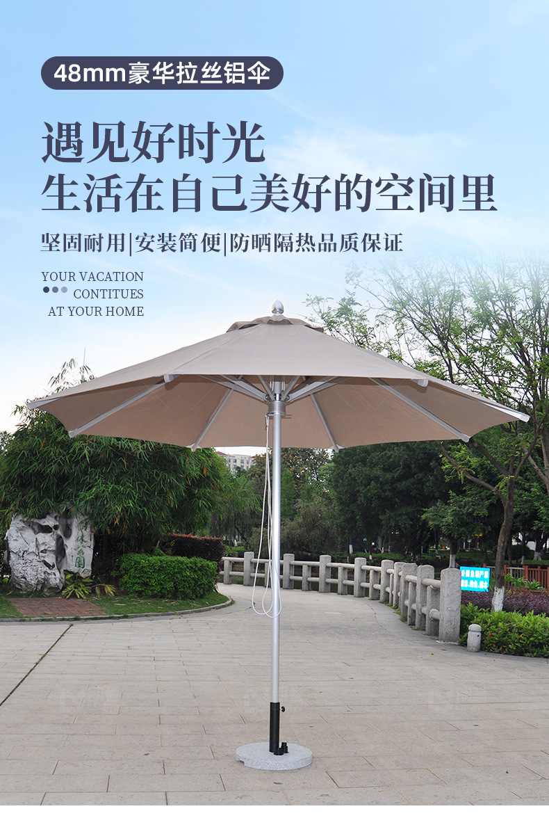 48 열 고급 알루미늄 합금 풀 로프 중간 칼럼 우산 야외 안뜰 정원 카페 태양 우산 야외 파라솔