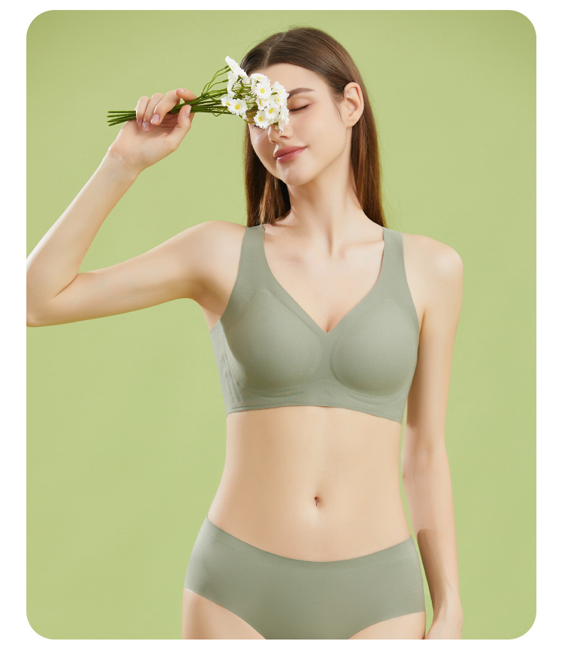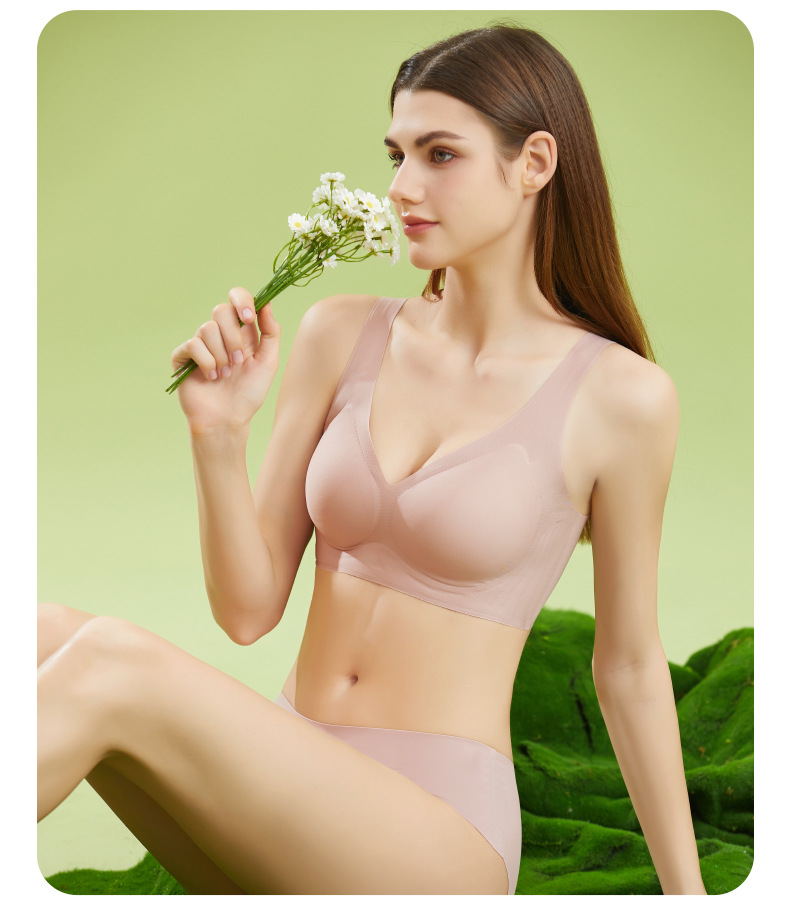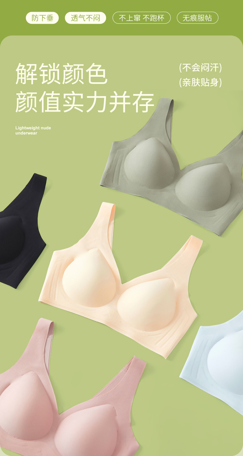라이브 폭발 원활한 높은 탄성 고정 컵 속옷 스틸 링 단색 플러스 사이즈 포장 된 가슴 봄과 여름 얼음 실크 브래지어없이 수집