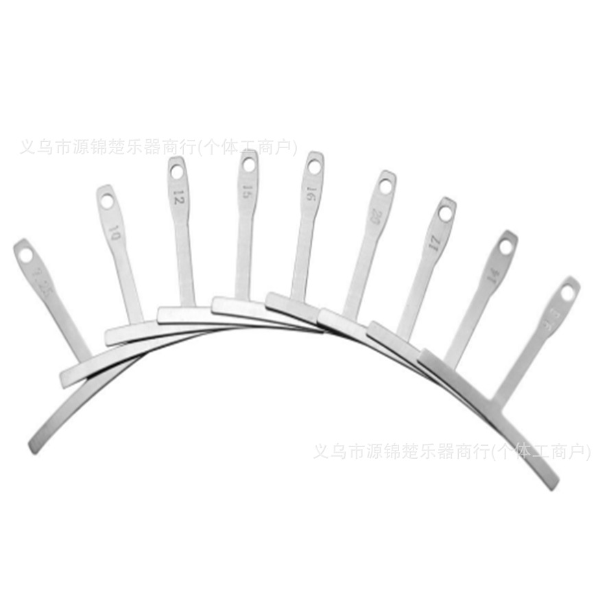 属性:9个规格,能满足各型号类型吉他指板品丝弧度测量,方便实用
