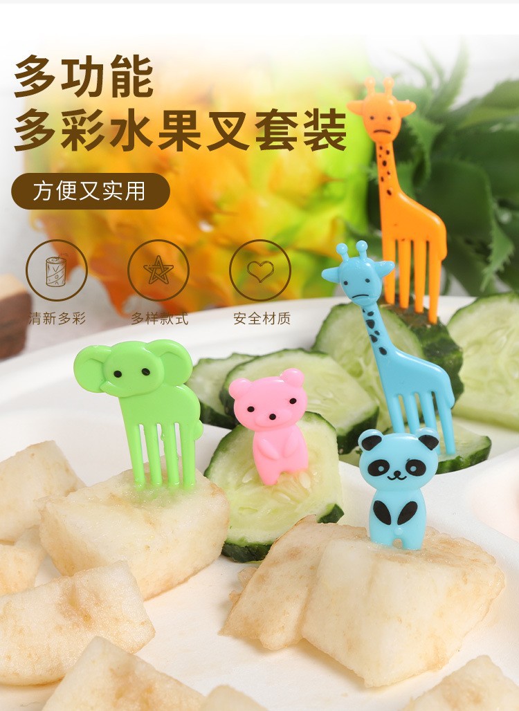 만화 동물 어린이 플라스틱 과일 포크 가정용 도시락 세트 귀여운 파티 음식 학년 과일 딤포크스토어 가기