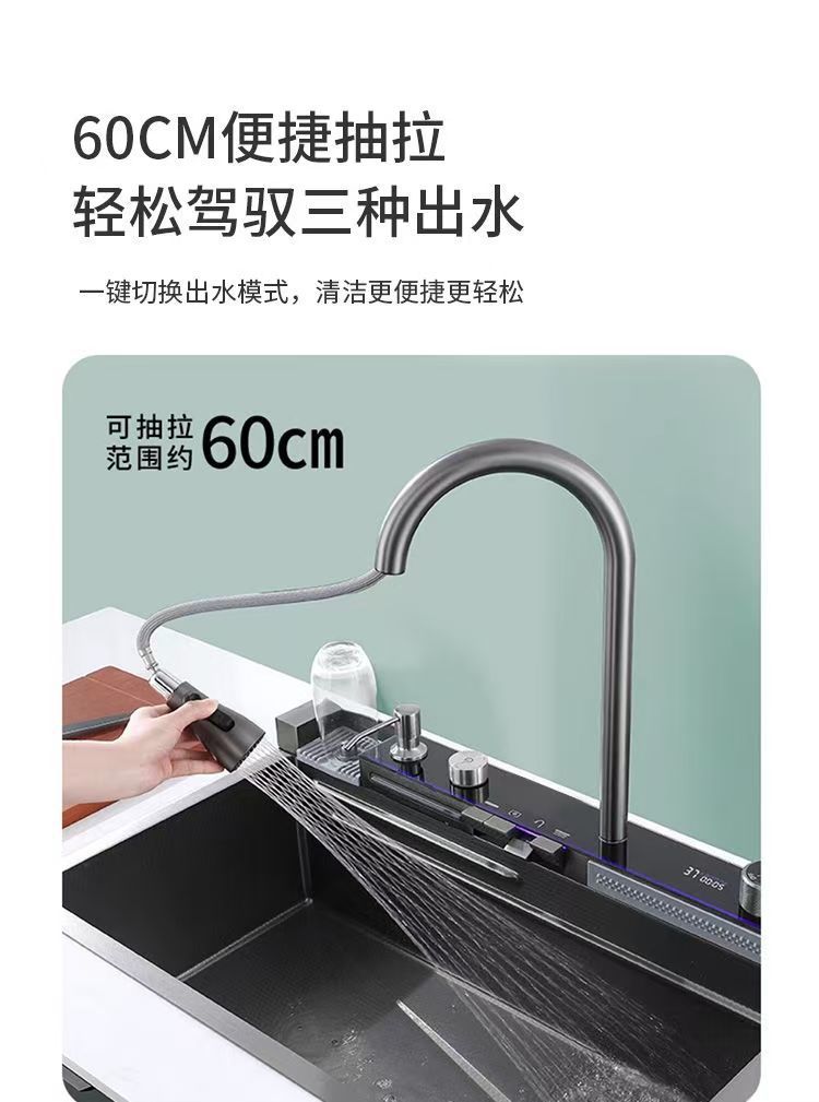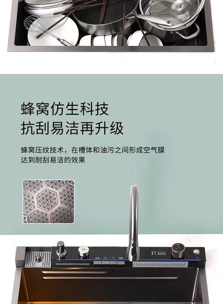 [6mm] 슈퍼 두꺼운 고래 주방 벌집 싱크 304 단일 슬롯 디지털 디스플레이 스테인레스 스틸 나노 가정용 식품 등급