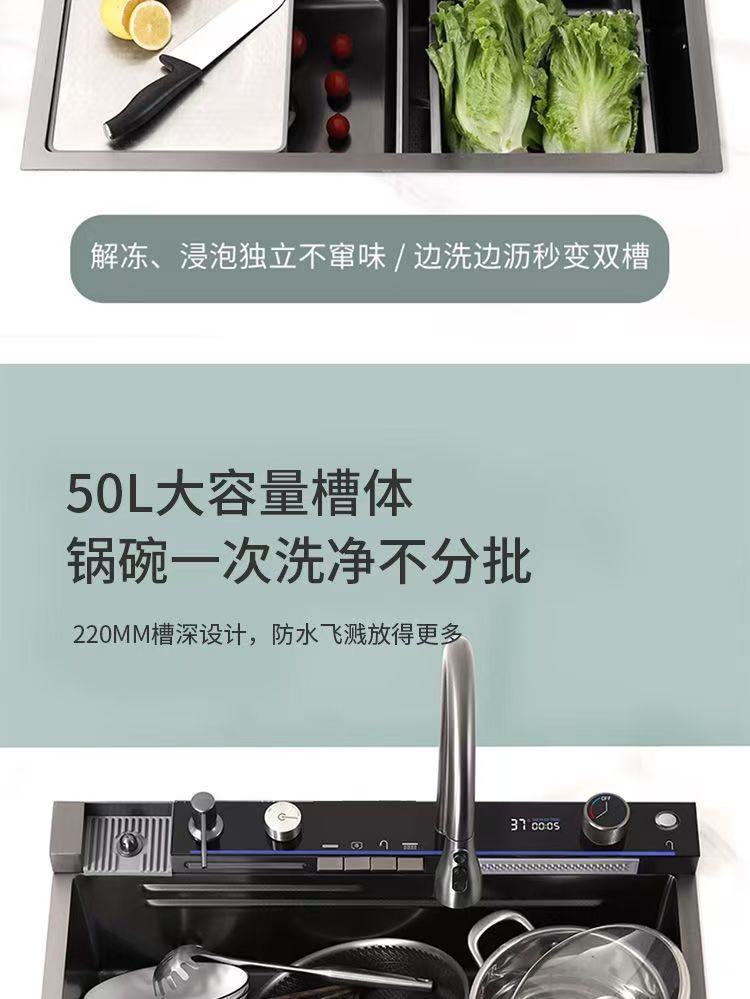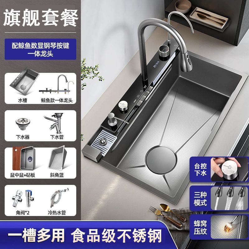 [6mm] 슈퍼 두꺼운 고래 주방 벌집 싱크 304 단일 슬롯 디지털 디스플레이 스테인레스 스틸 나노 가정용 식품 등급스토어 가기