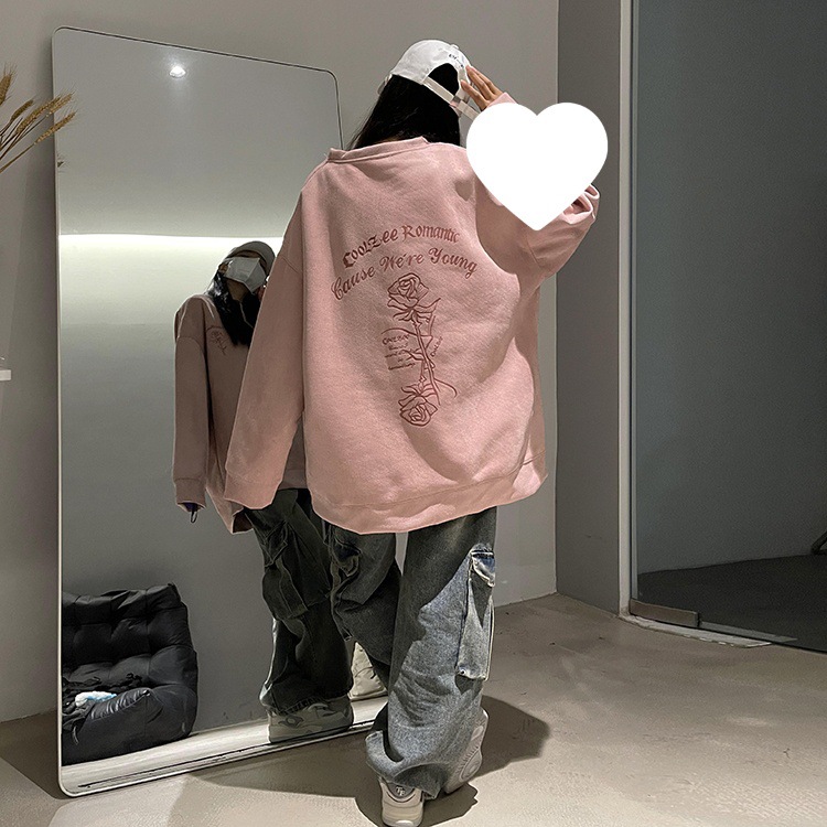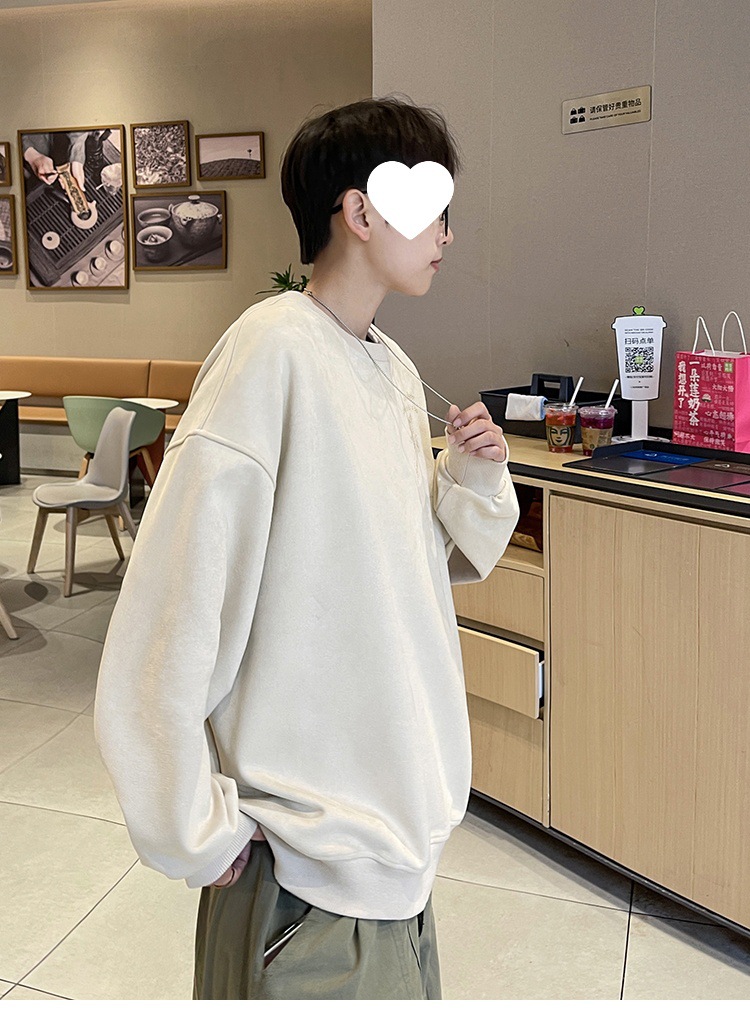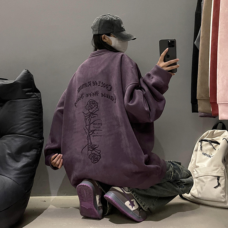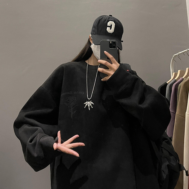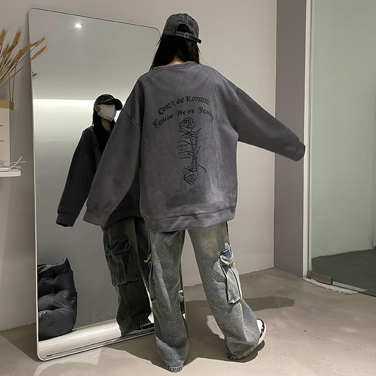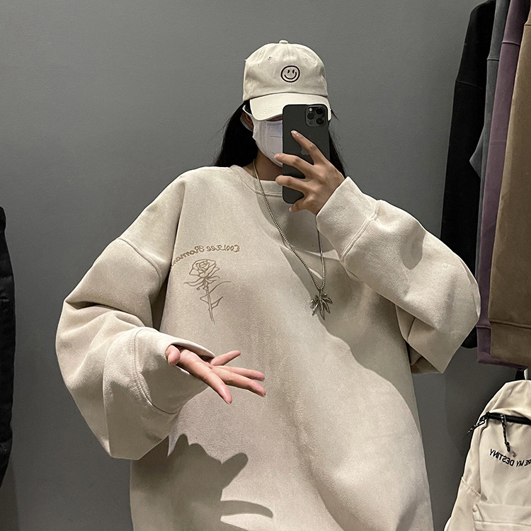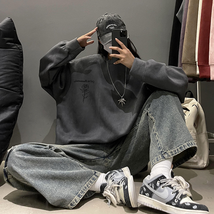 새로운 폭발 로즈 스웨이드 미국 패션 브랜드 모자없는 크루 넥 스웨트 셔츠 남자의 봄과 가을 새로운 2024 빈티지 상위 세대 헤어스토어 가기