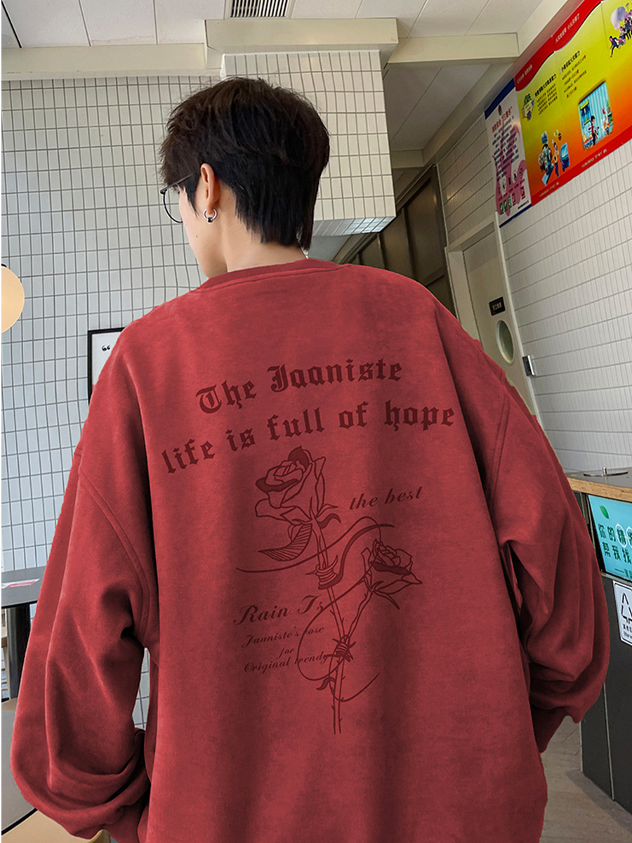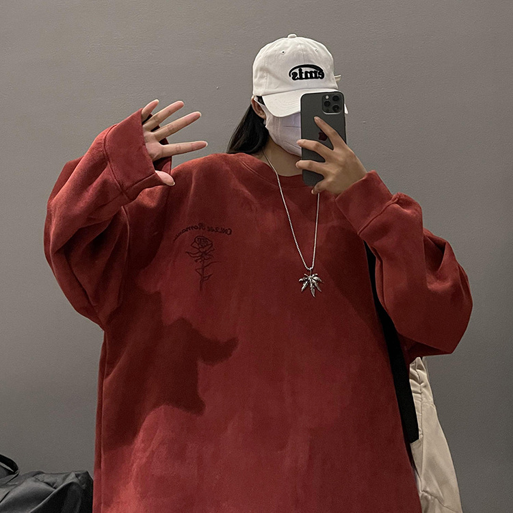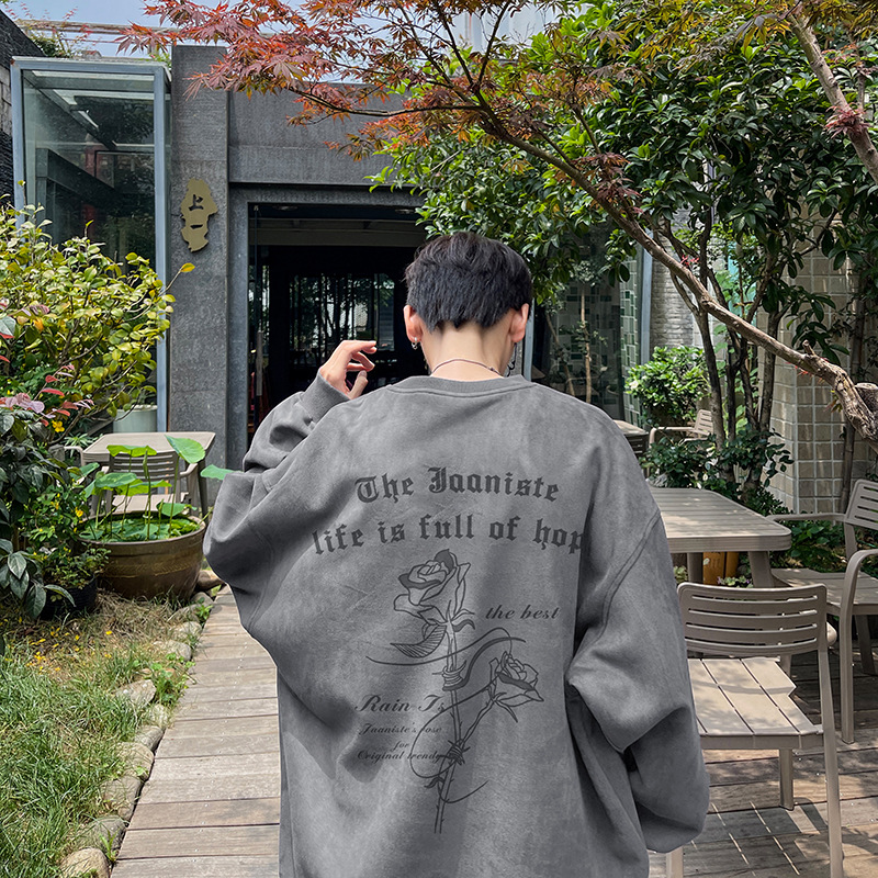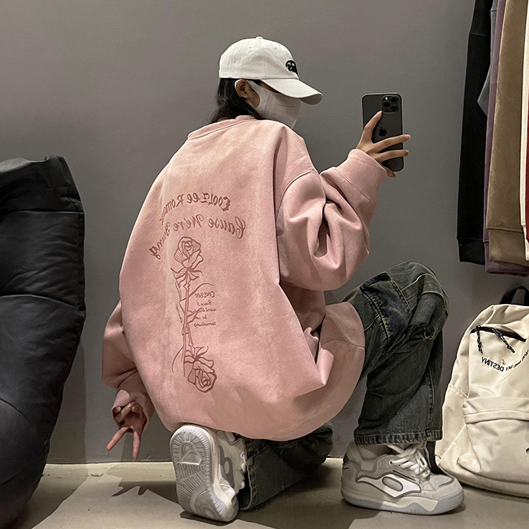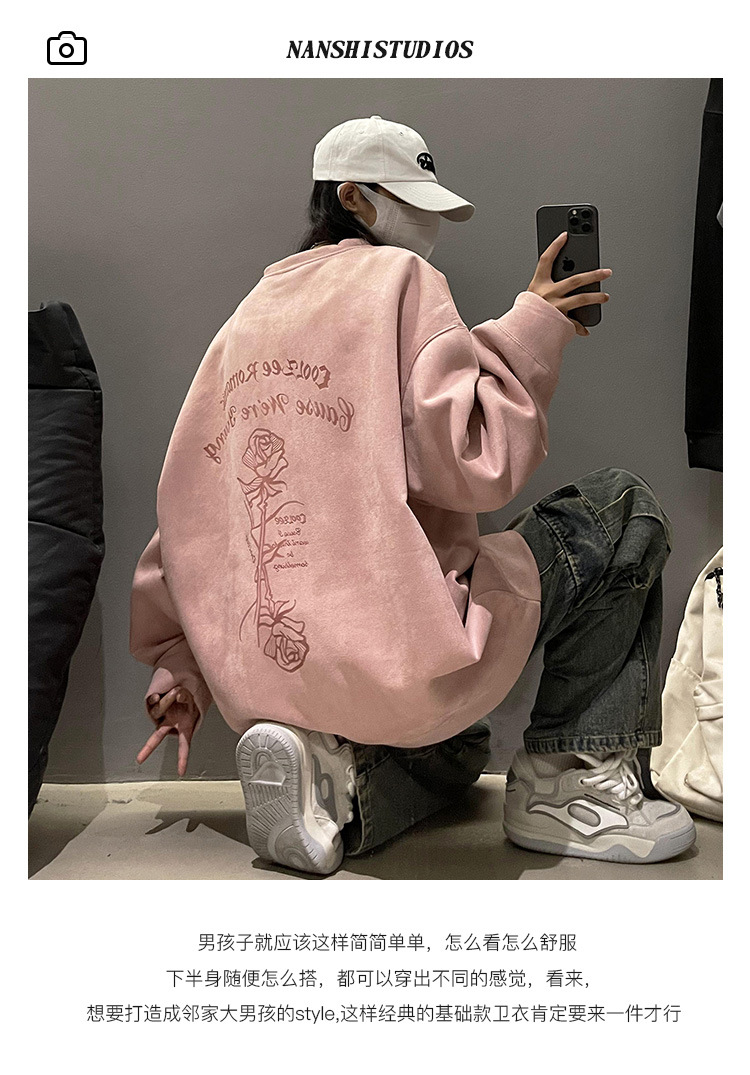 새로운 폭발 로즈 스웨이드 미국 패션 브랜드 모자없는 크루 넥 스웨트 셔츠 남자의 봄과 가을 새로운 2024 빈티지 상위 세대 헤어