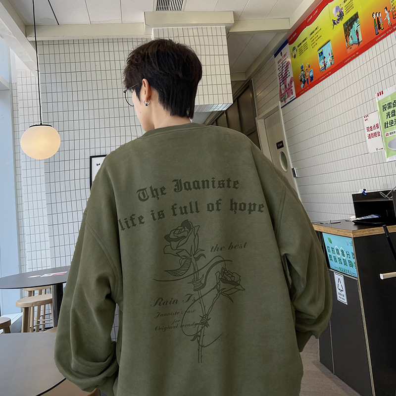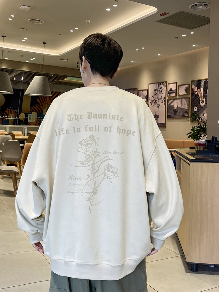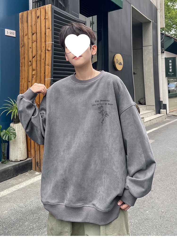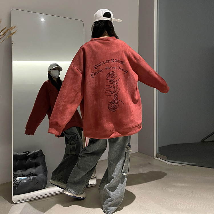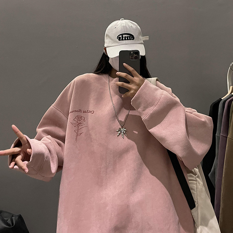 새로운 폭발 로즈 스웨이드 미국 패션 브랜드 모자없는 크루 넥 스웨트 셔츠 남자의 봄과 가을 새로운 2024 빈티지 상위 세대 헤어