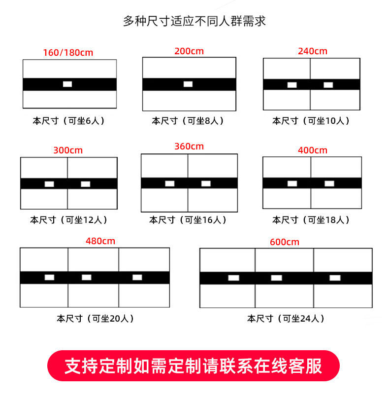 • 길이 240 너비 120 높이 74(업그레이드된 회전 의자 8개 포함)