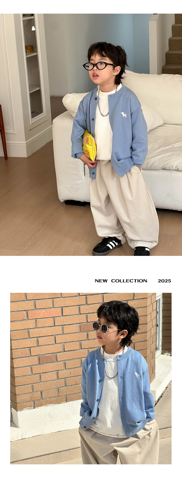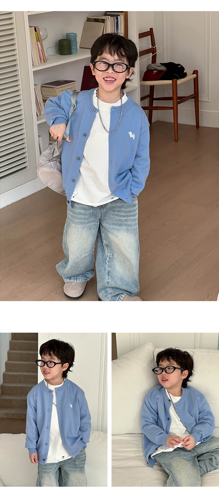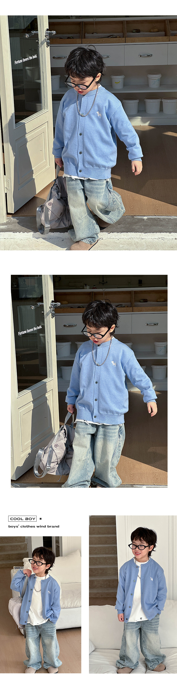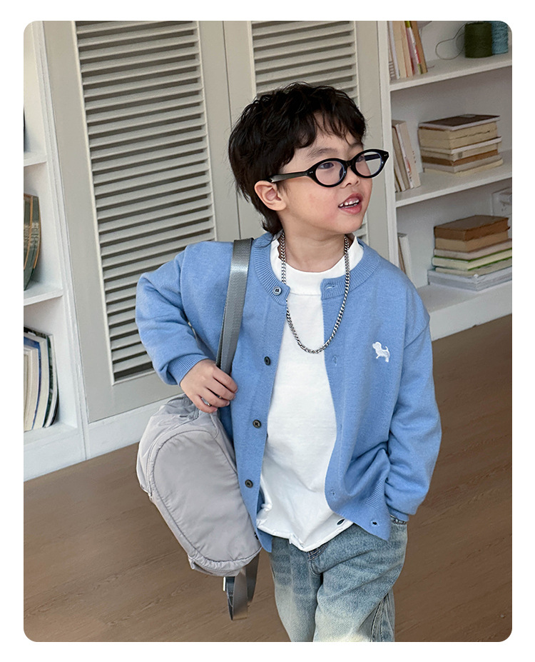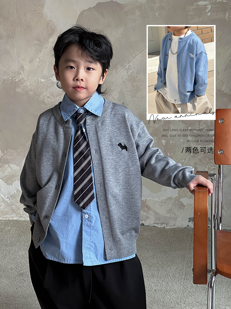 어린이 한국식 니트웨어 2025 봄 새 소년 트렌디 칼리지 스타일 카디건 어린이 잘 생긴 탑 트렌디스토어 가기