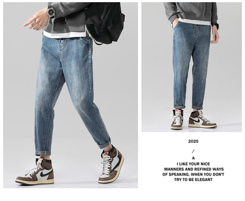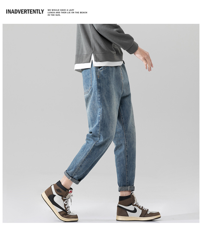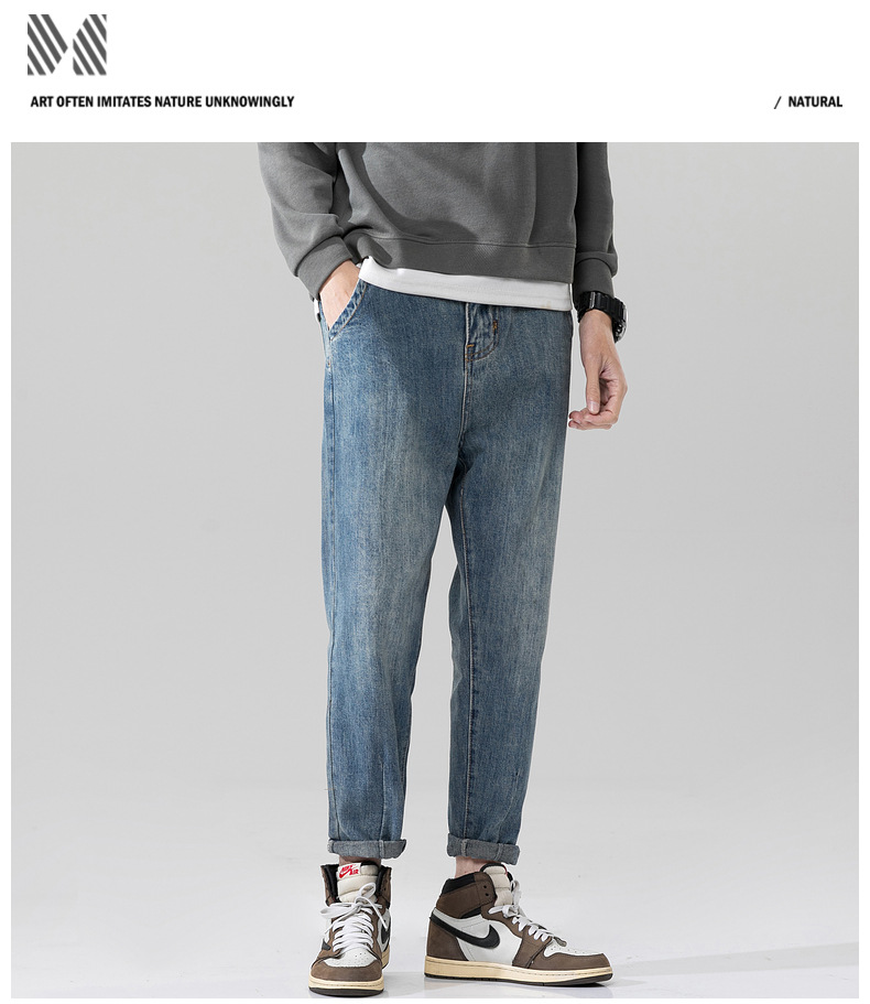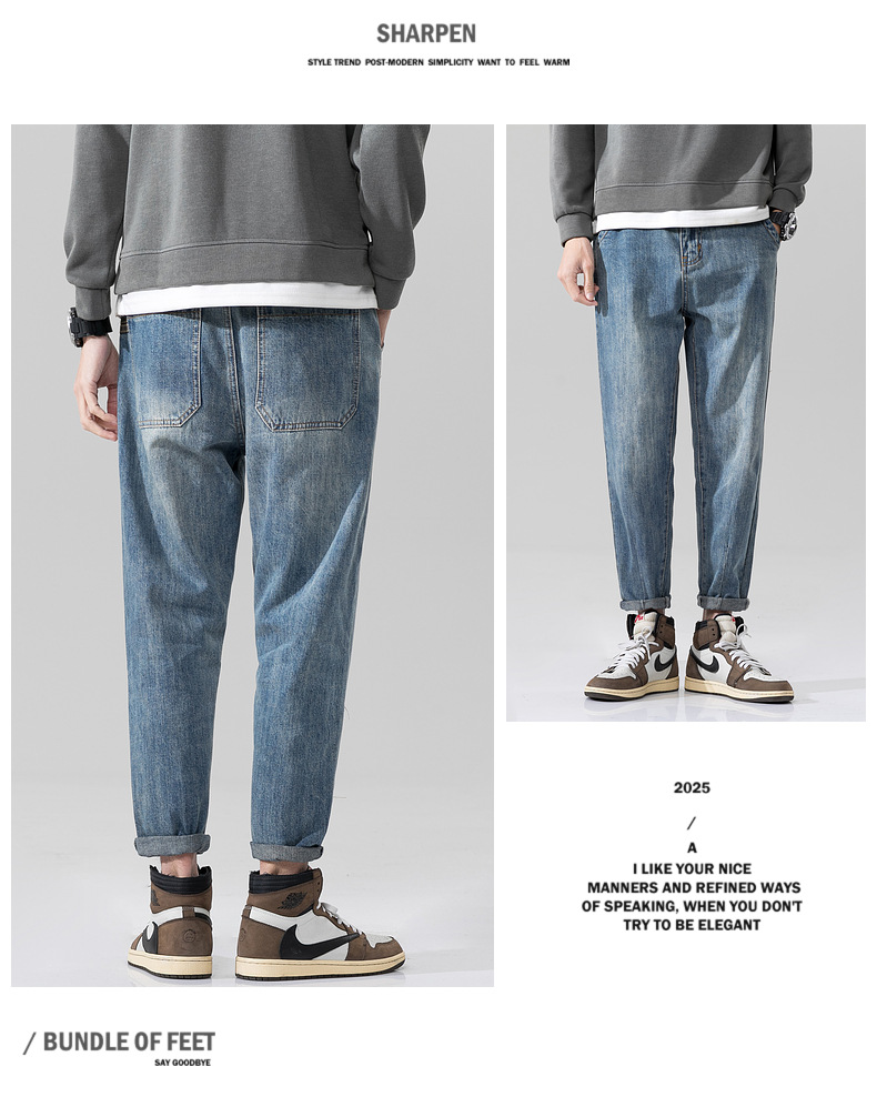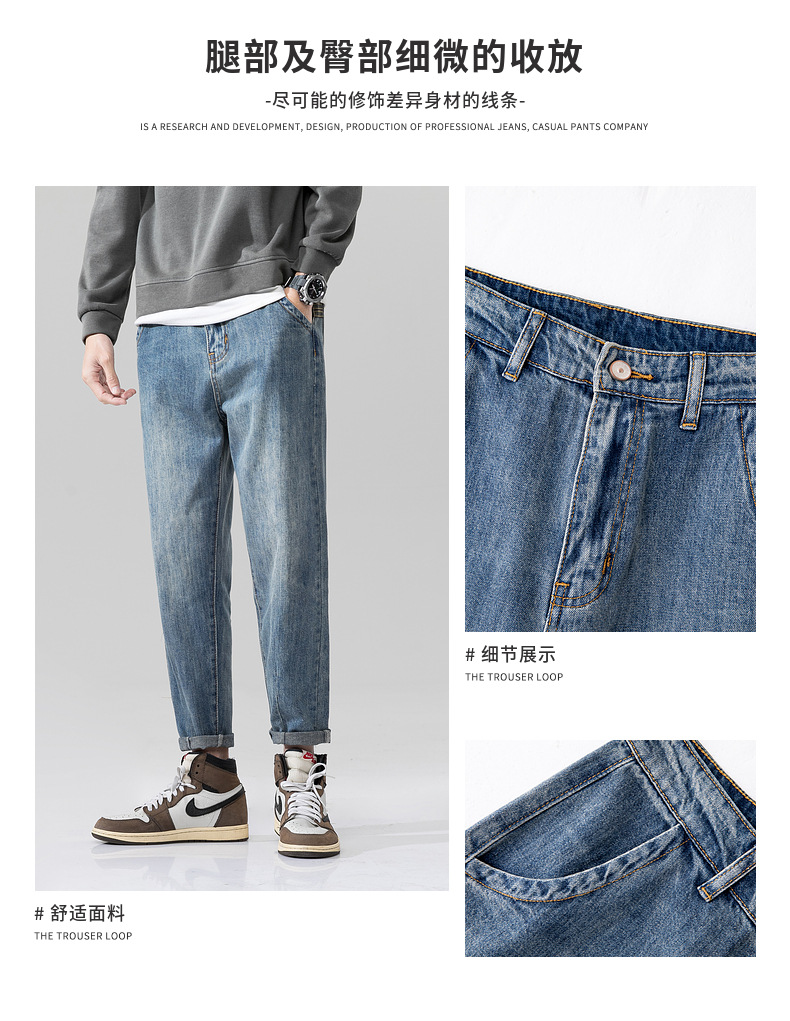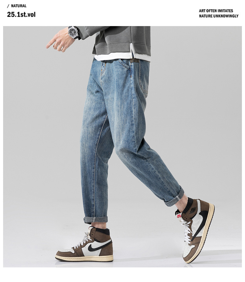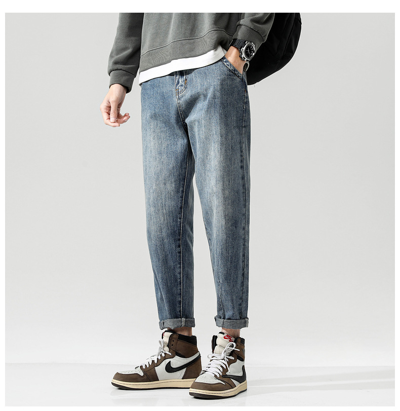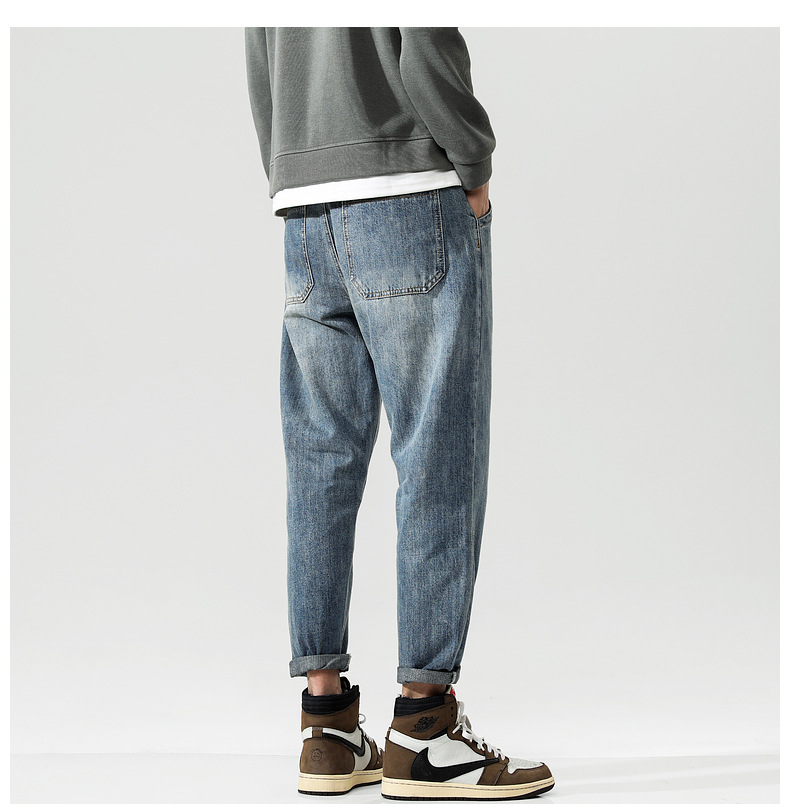 새로운 폭발성 블루 청바지 남자의 가을과 겨울 기모 느슨한 스트레이트 남자 바지 봄과 가을 패션 브랜드 일본 스타일 레트로스토어 가기