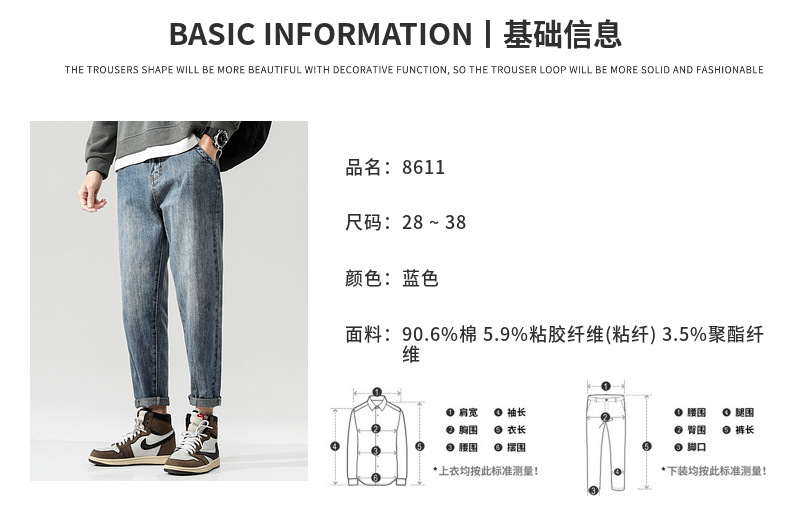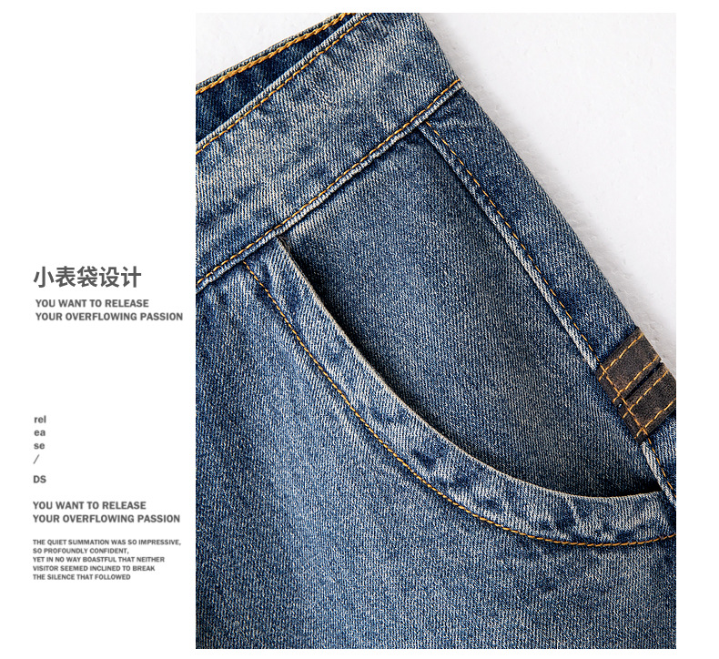 새로운 폭발성 블루 청바지 남자의 가을과 겨울 기모 느슨한 스트레이트 남자 바지 봄과 가을 패션 브랜드 일본 스타일 레트로