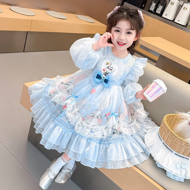 소녀 로리타 원피스 봄과 가을 새로운 주디 토끼 세련된 유행 어린이 생일 공주 원피스 트렌디