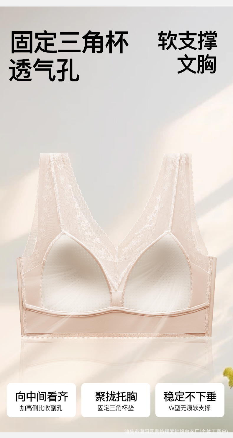 유럽과 미국의 레이스 새틴 와이드 숄더 스트랩 아름 다운 백 브라 고정 컵 포장 된 유방 붕괴 추적없는 모임 조끼 속옷스토어 가기
