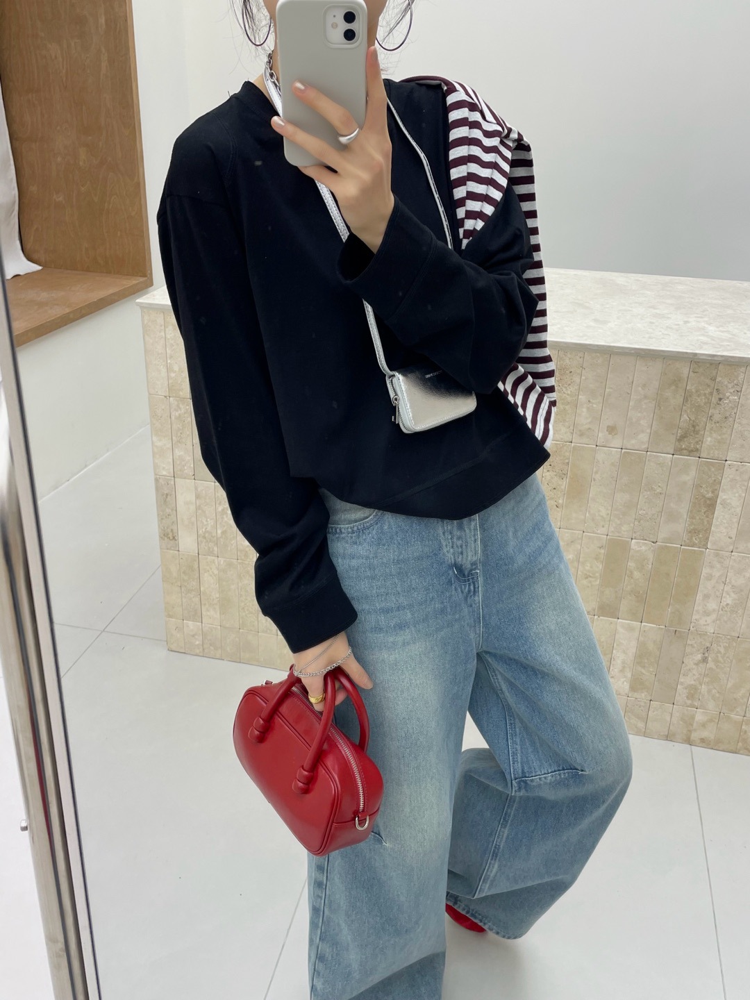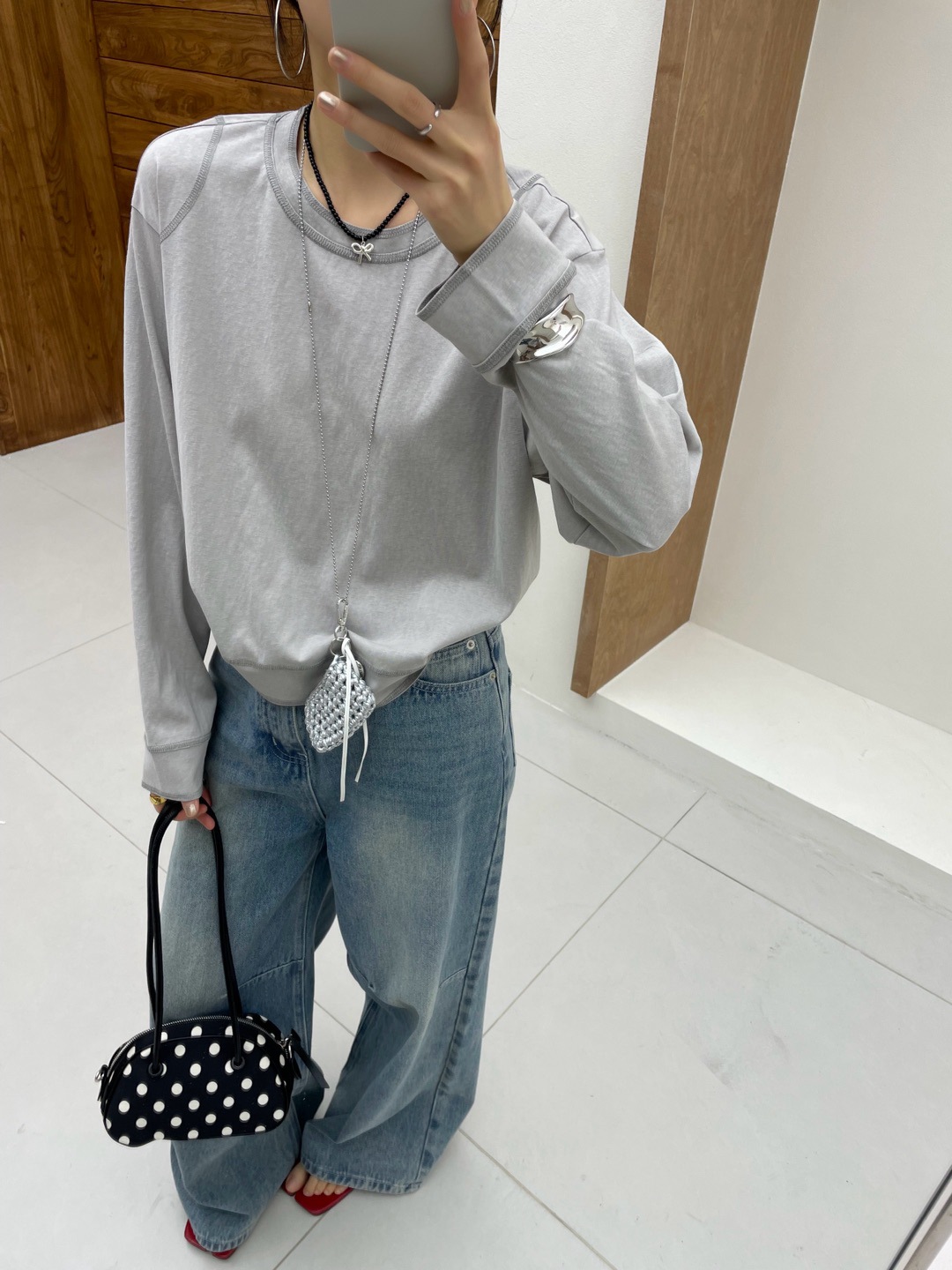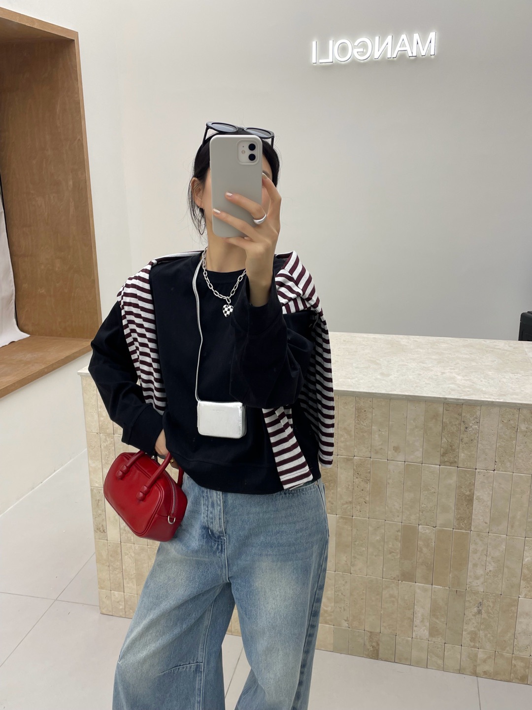 일본의 새로운 솔리드 컬러 라운드 넥 루즈 캐주얼 단순 올 매치 풀오버 라운드 넥 땀 여자 긴 소매 탑