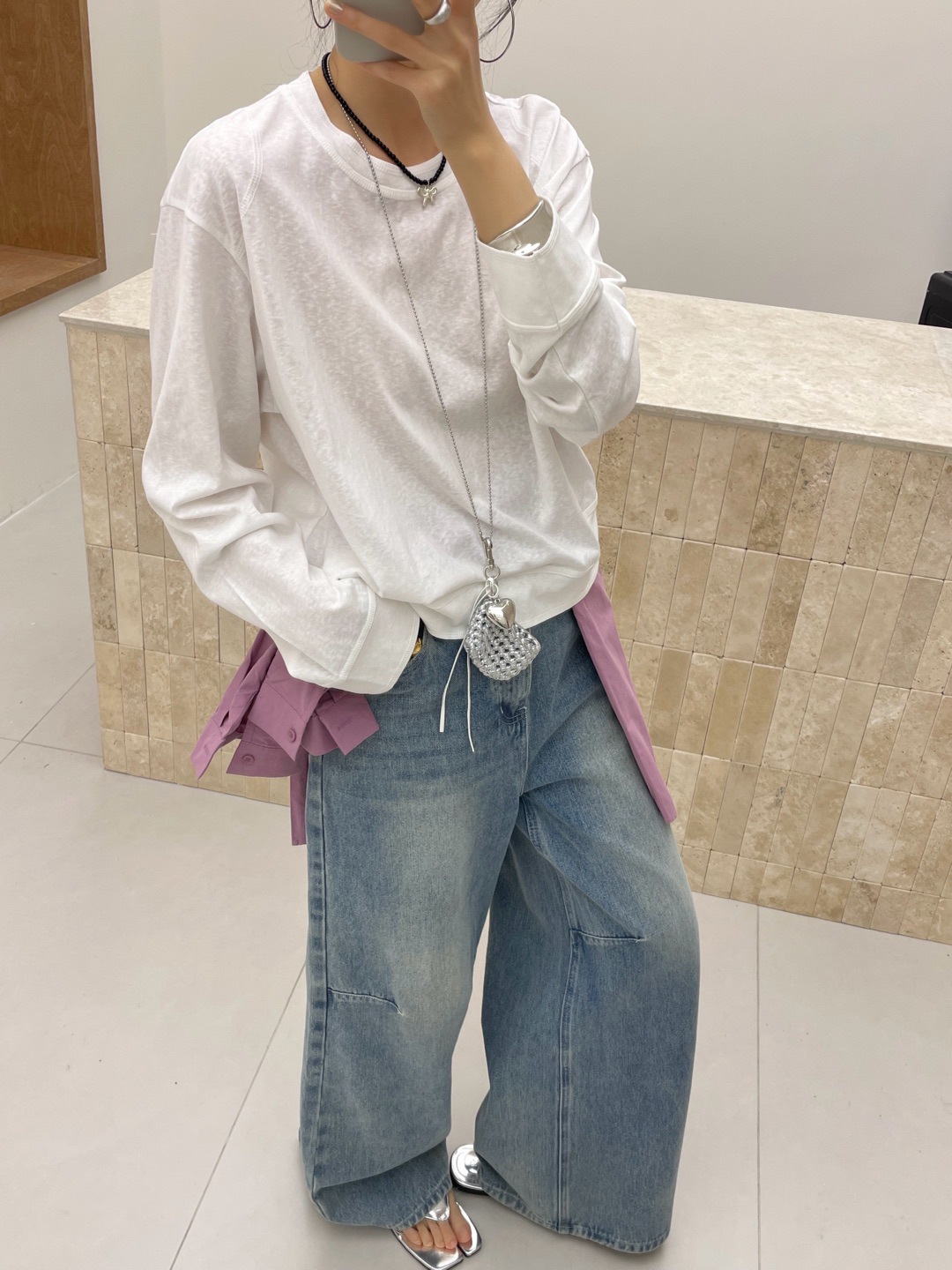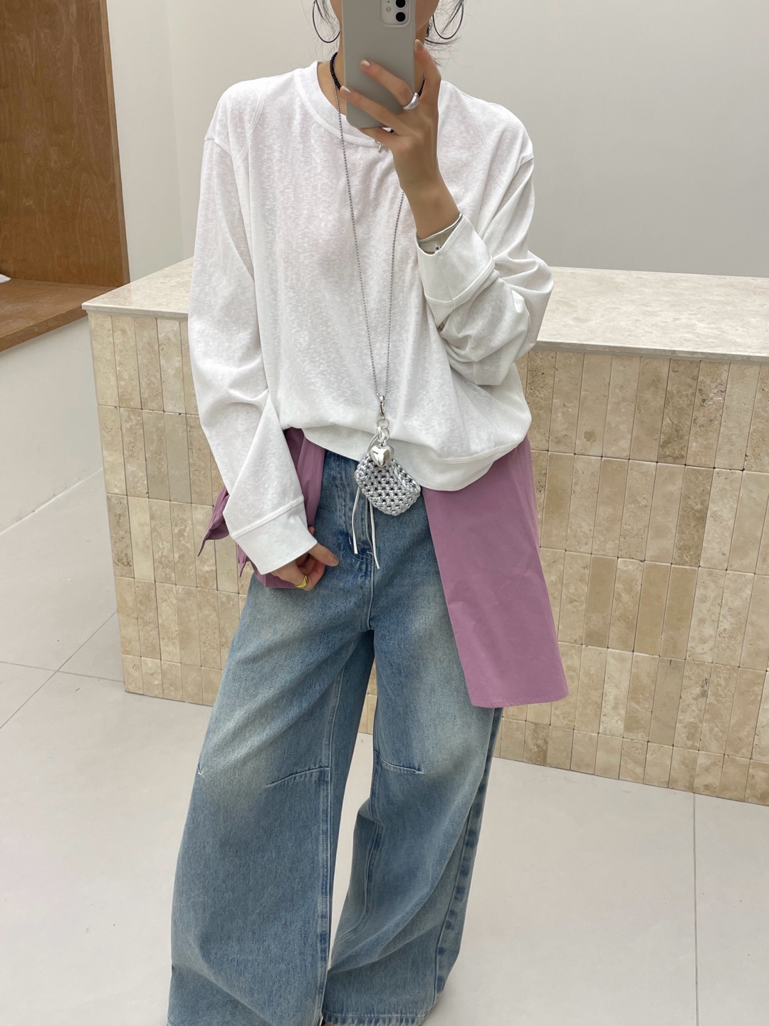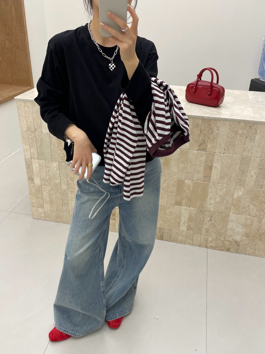 일본의 새로운 솔리드 컬러 라운드 넥 루즈 캐주얼 단순 올 매치 풀오버 라운드 넥 땀 여자 긴 소매 탑