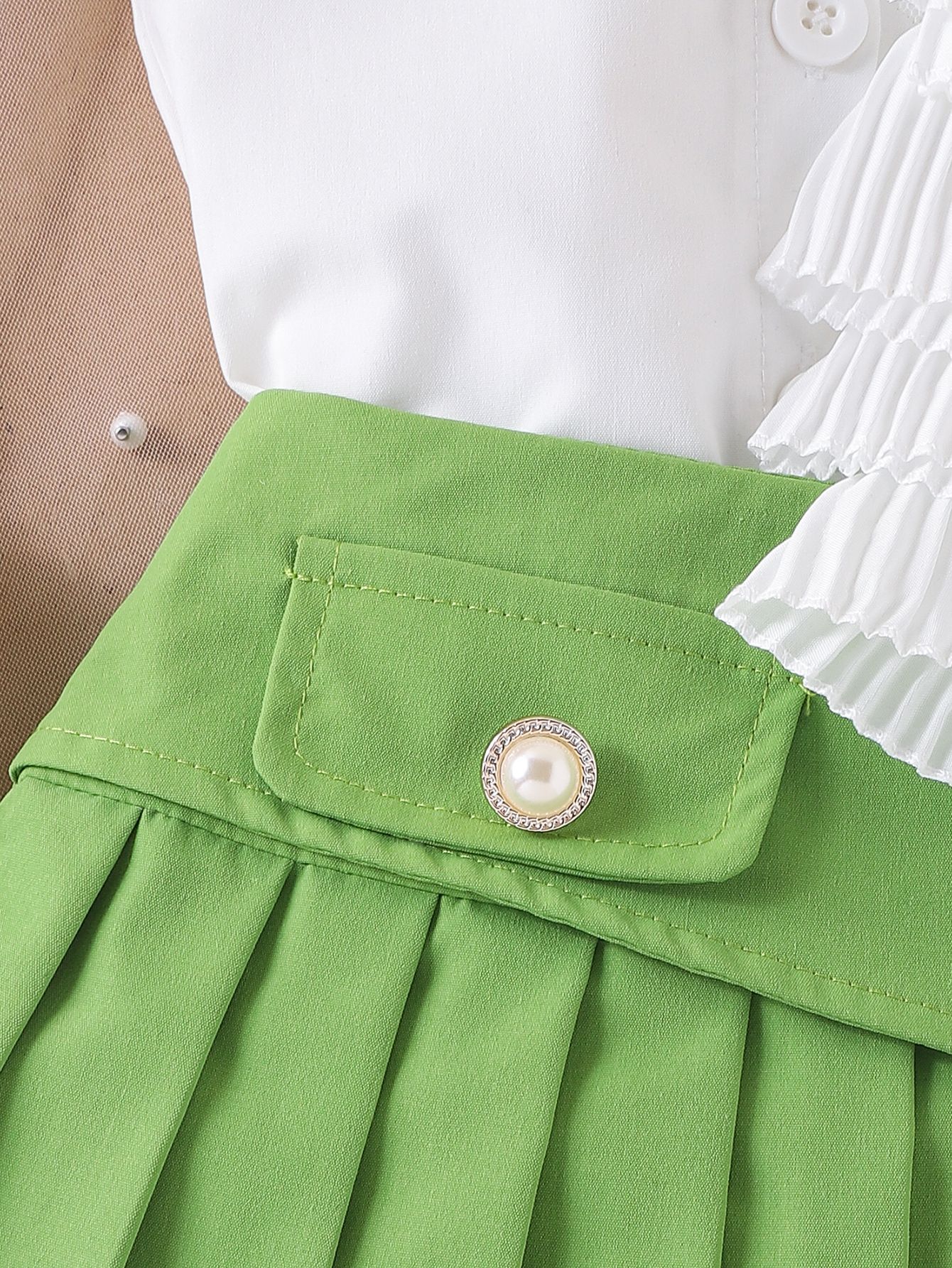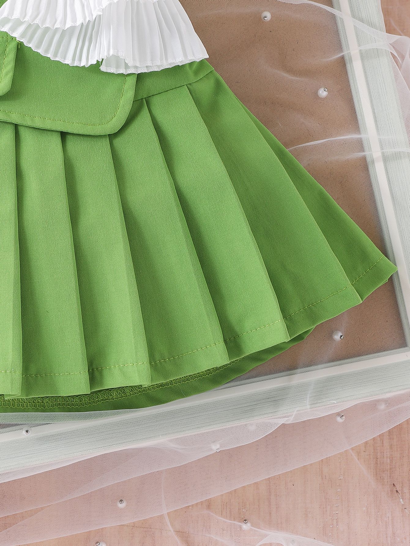 2025 아마존 유럽과 미국 여름 어린이 옷깃 민소매 셔츠 장미 빨간 주름 치마를 세트 새로운 소녀스토어 가기