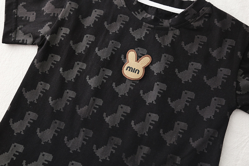 어린이 의류 도매 여름 의류 어린이 세트 여름 의류 2025 새로운 인쇄 공룡 아기 티셔츠 소년 여름 세트