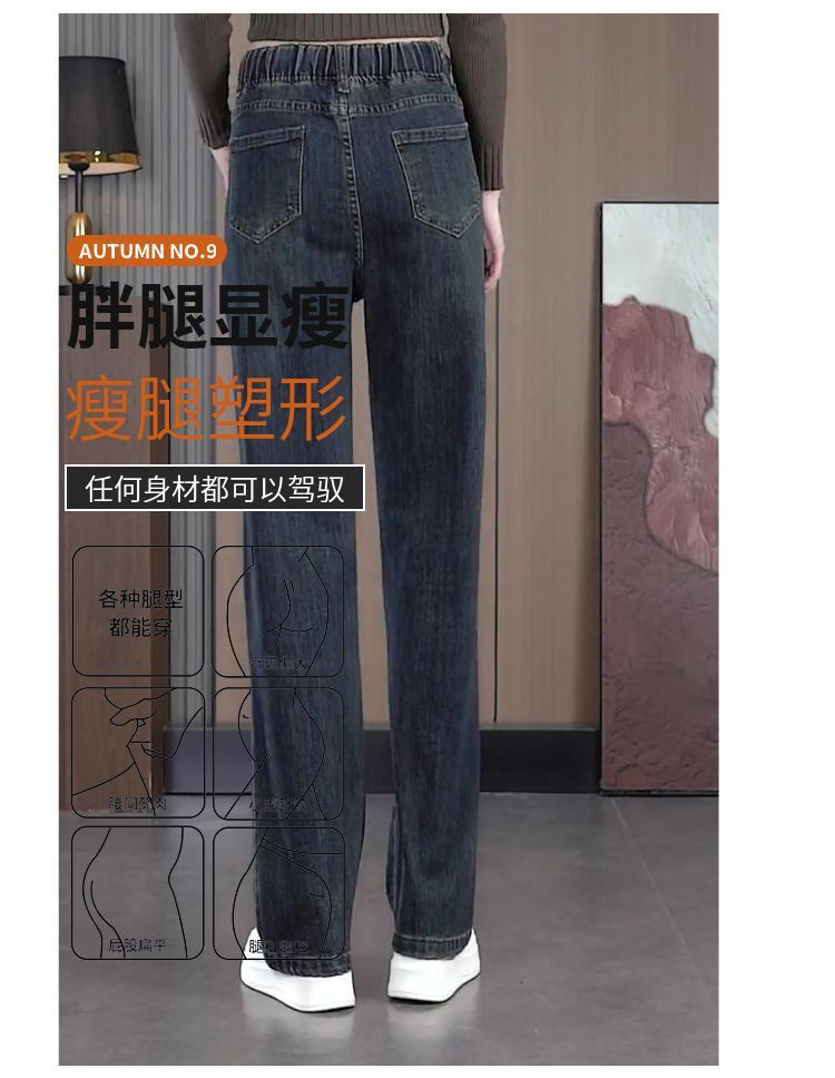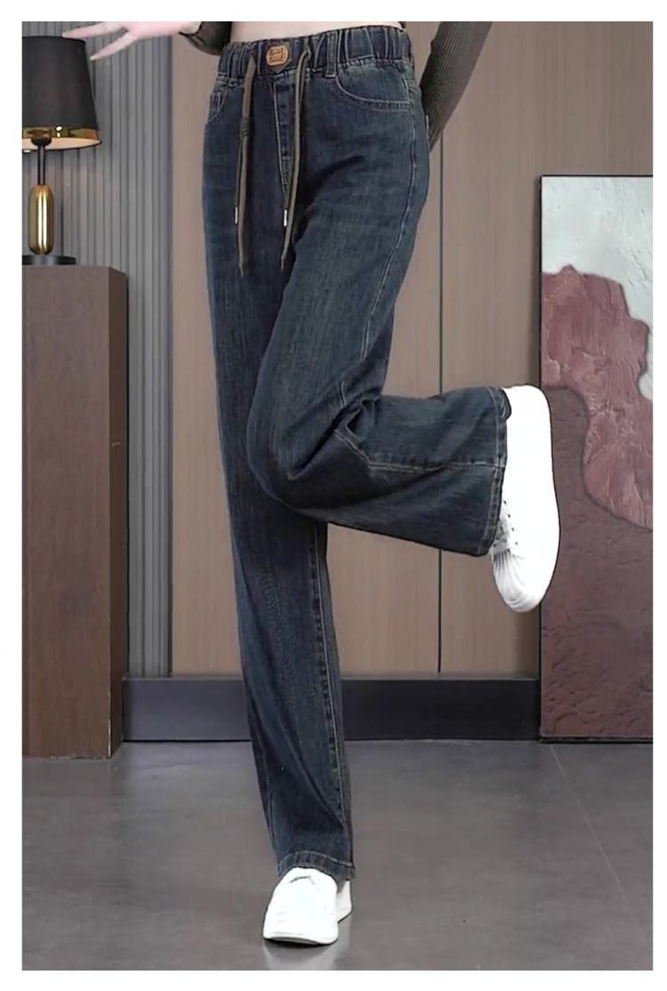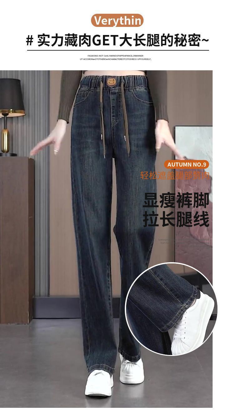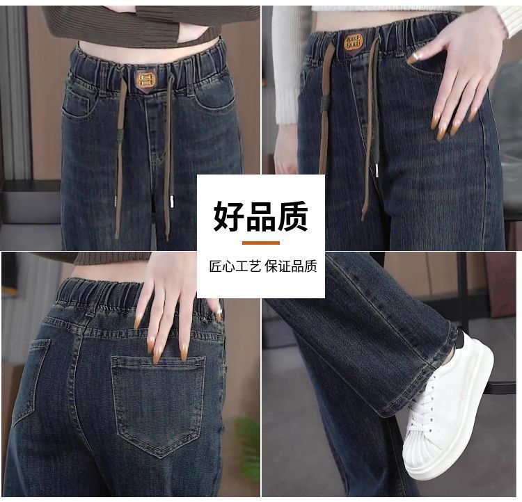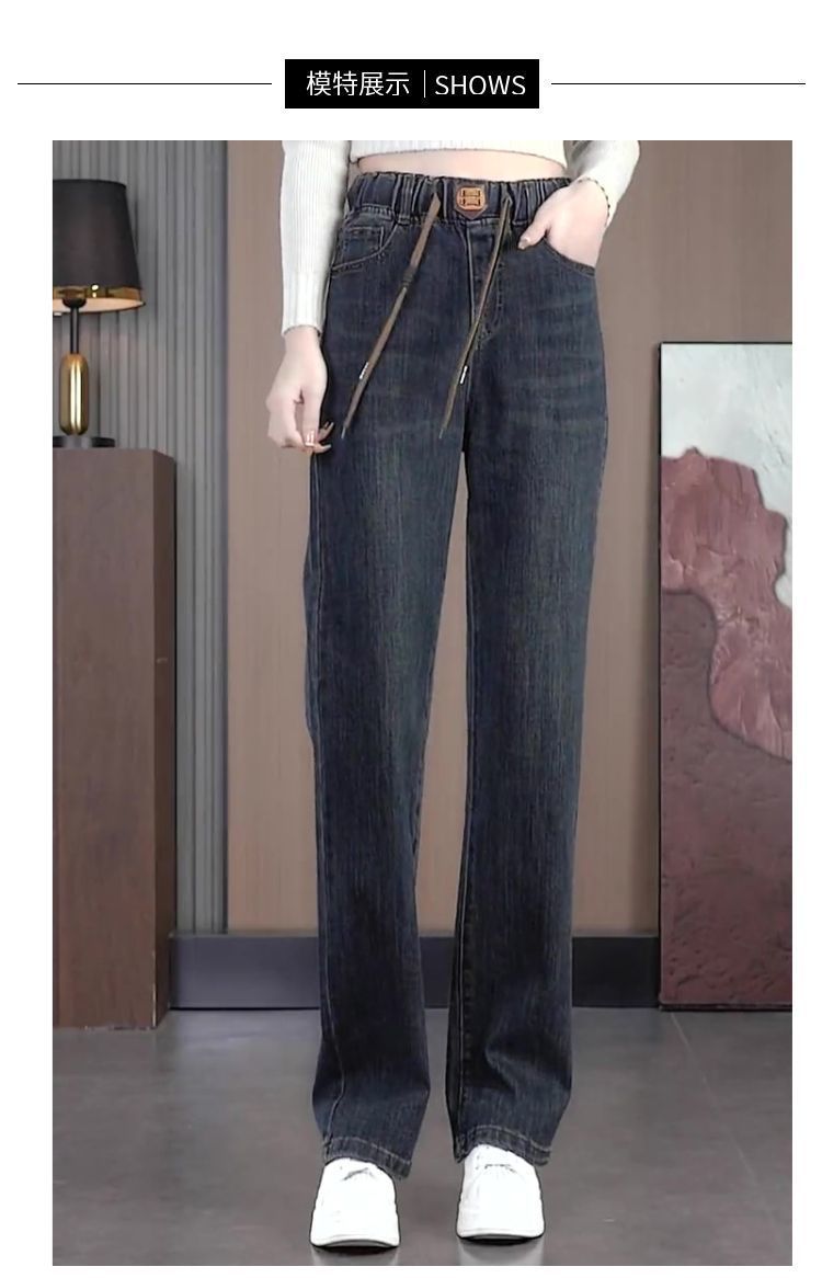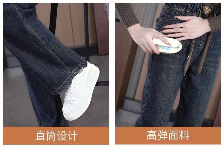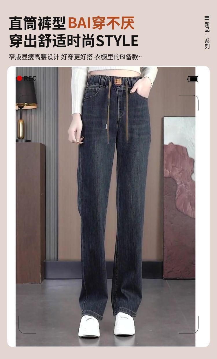 탄성 기모 좁은 넓은 다리 스트레이트 청바지 2024 느슨한 새로운 높은 허리 슬리밍 봄과 가을 바지 스트레이트 바지스토어 가기